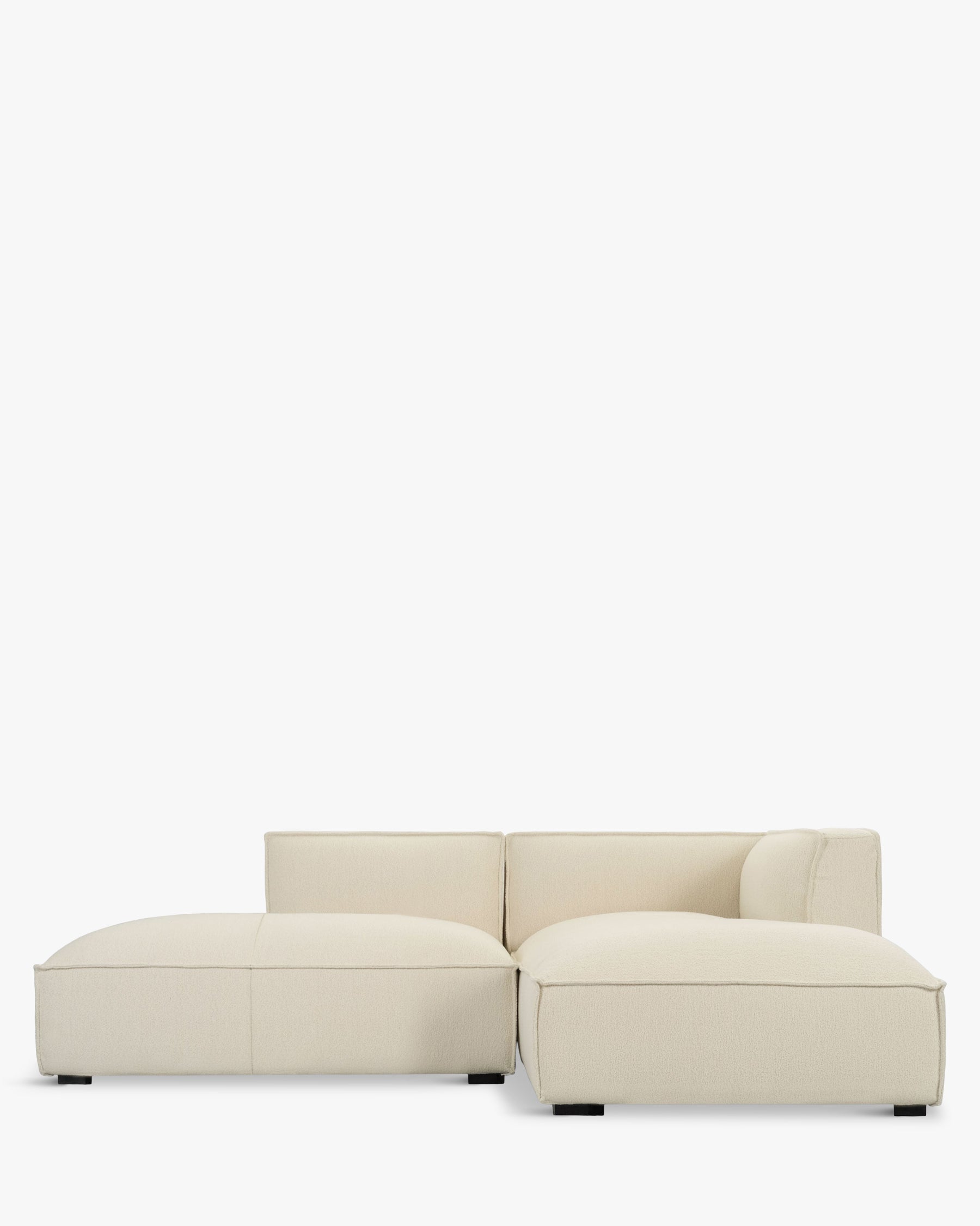 Canapé angle droit, Blanc bouclette anti-tâches & bois noir, option modulable, L300
