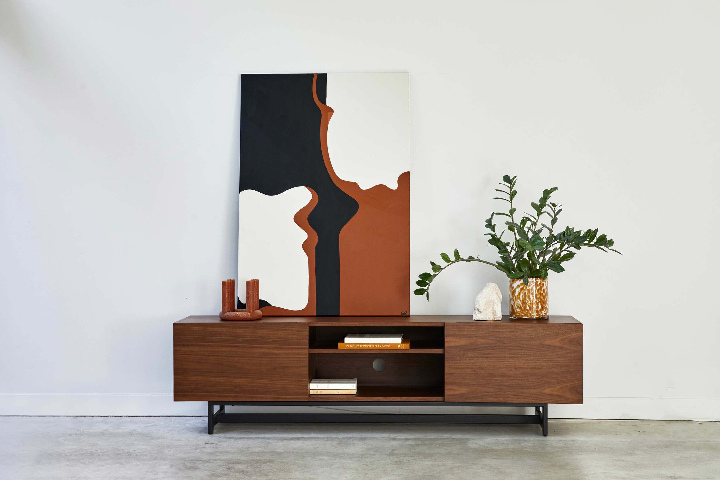 Meuble TV en métal et matériaux mixtes