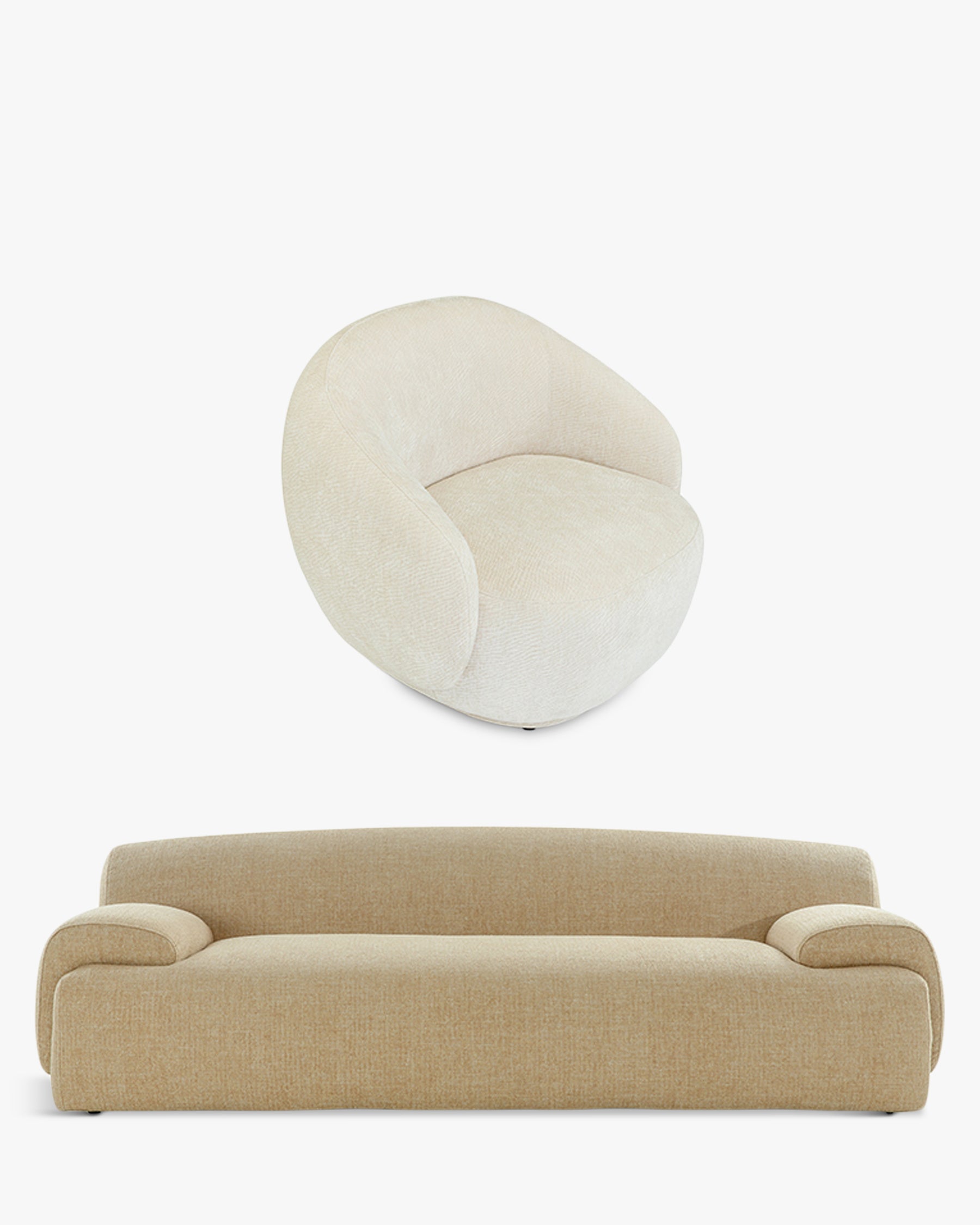 Ensemble fauteuil + canapé 3 places, Blanc crêpé + beige avoine