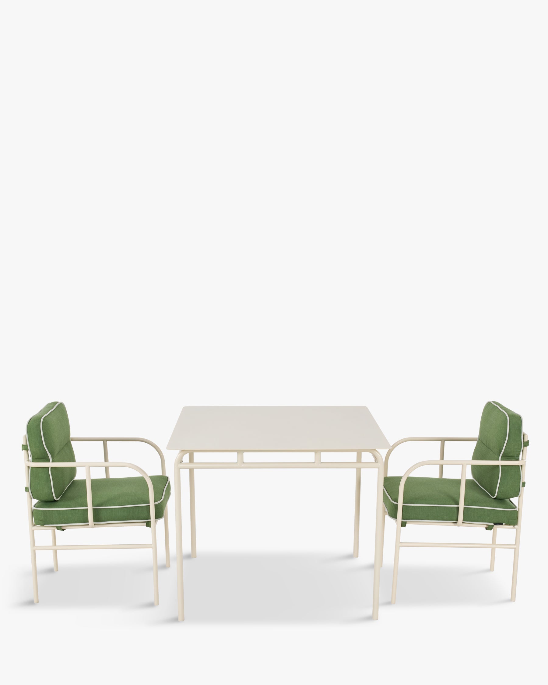 Garten-Set, quadratischer Gartentisch + 2 Stühle, Wiesengrün & mandelbeiges Metall