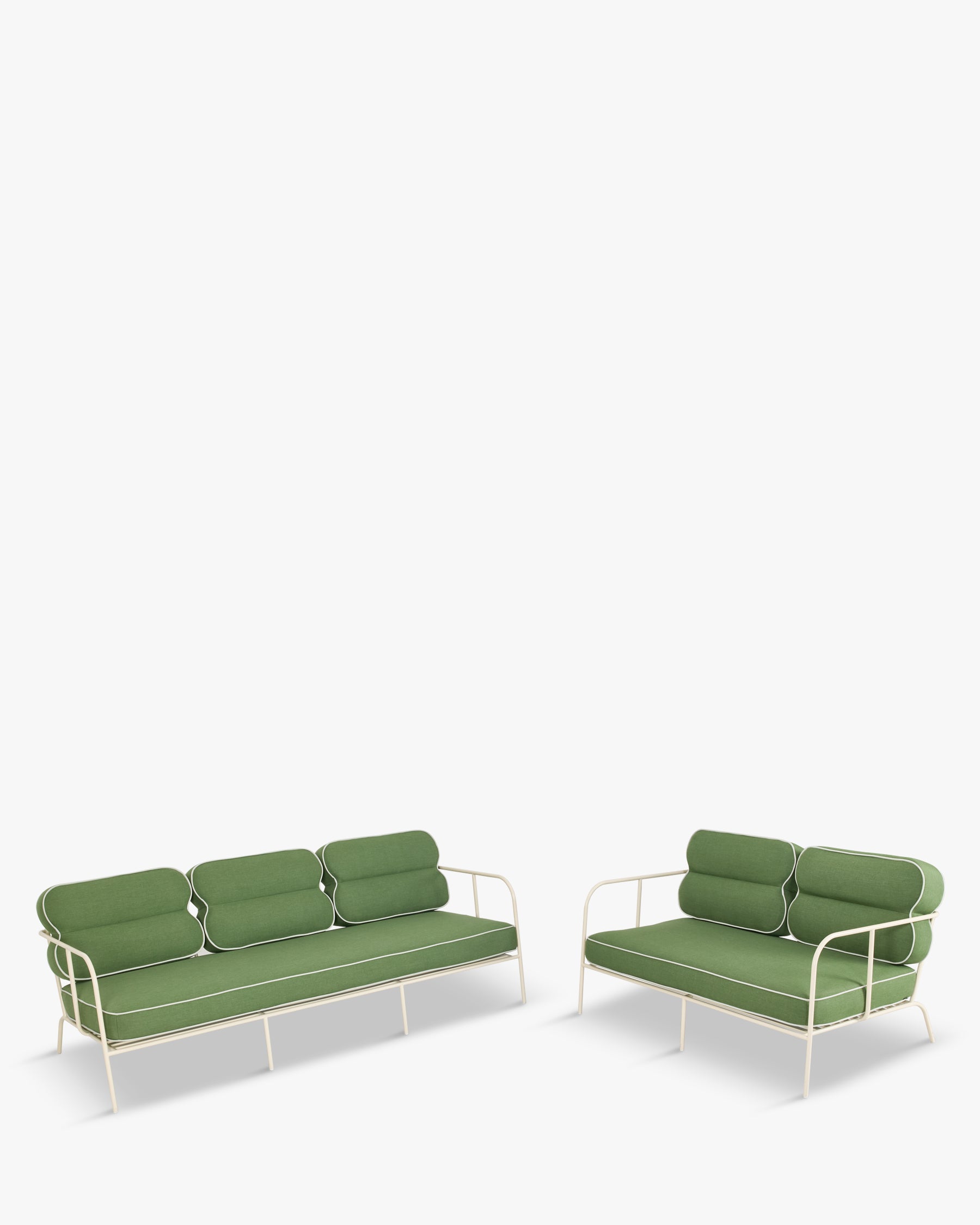 Gartenlounge, 3-Sitzer-Sofa + 2-Sitzer-Sofa, Wiesengrün & beiges Metall