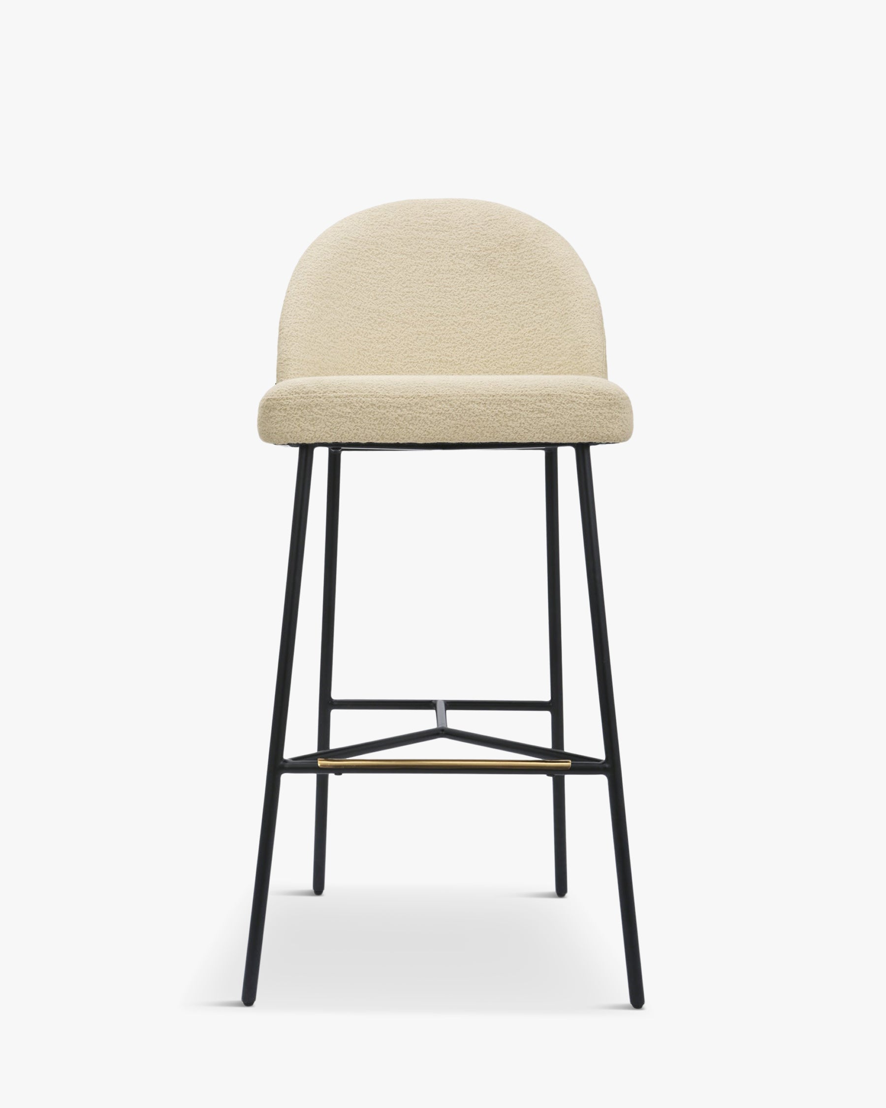 Barhocker, Bouclé Stoff Weiß & schwarzes Metall, H78