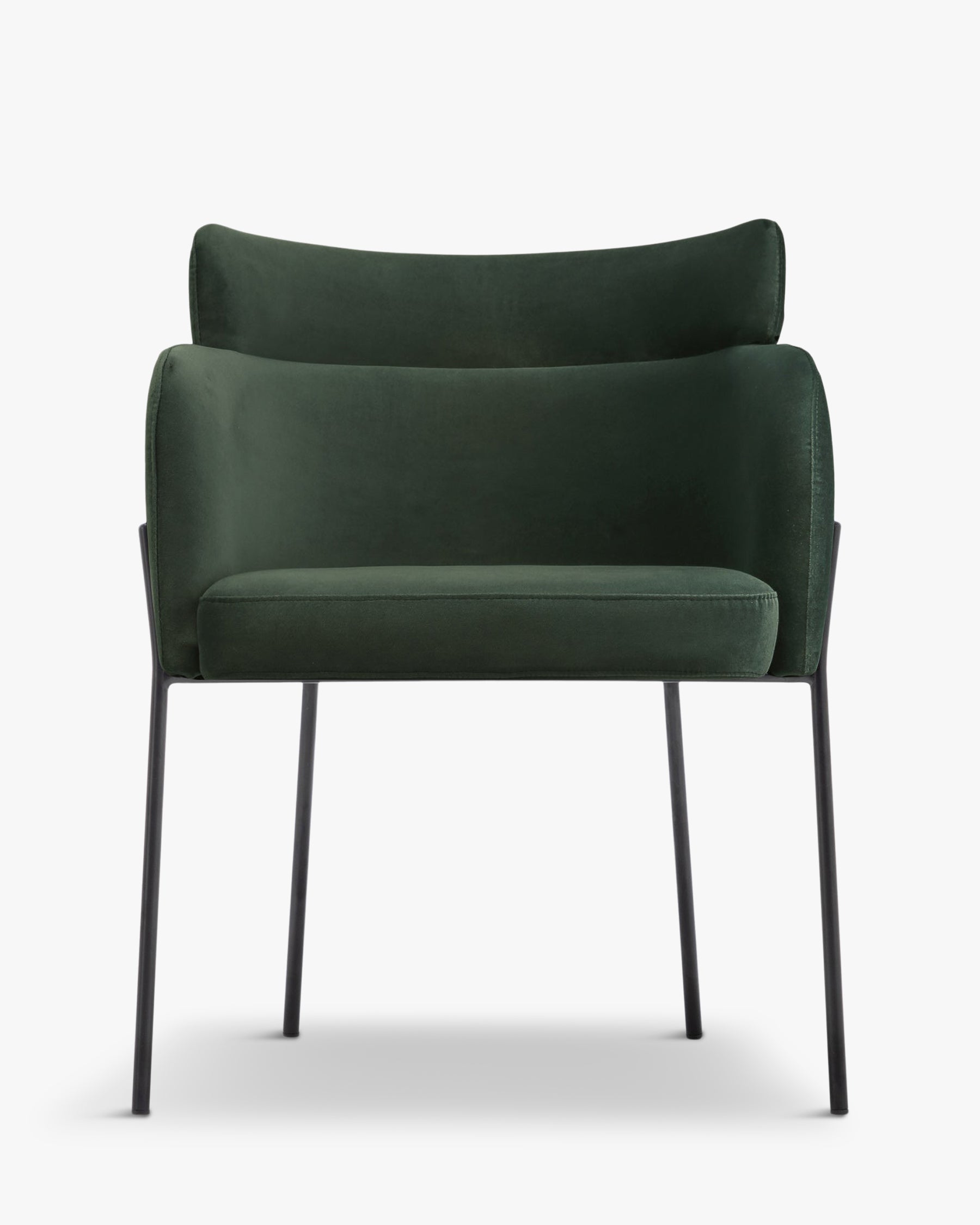 Polsterstuhl, Samt in Grün & schwarzes Metall