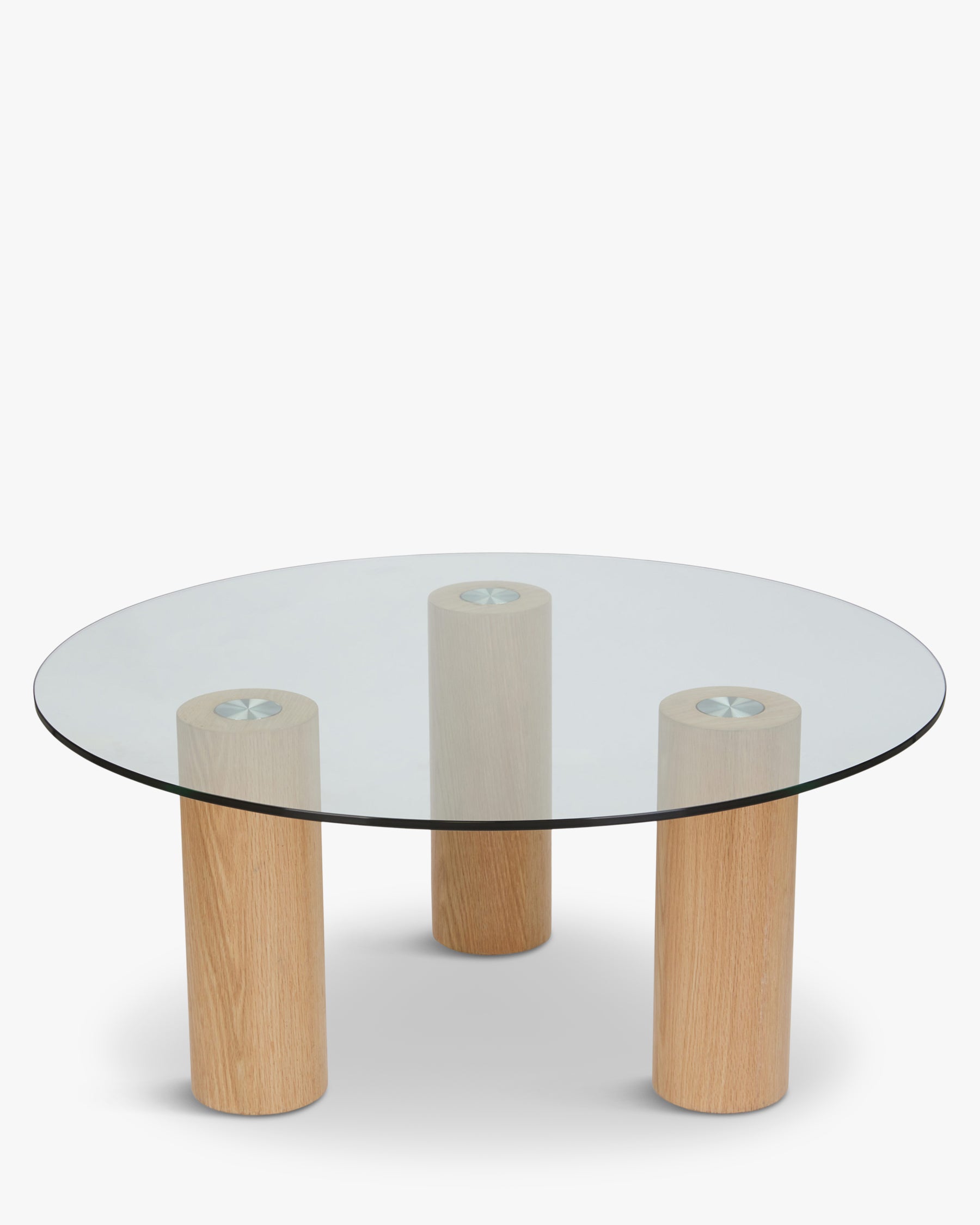 Table basse, Verre trempé & bois naturel, Ø85