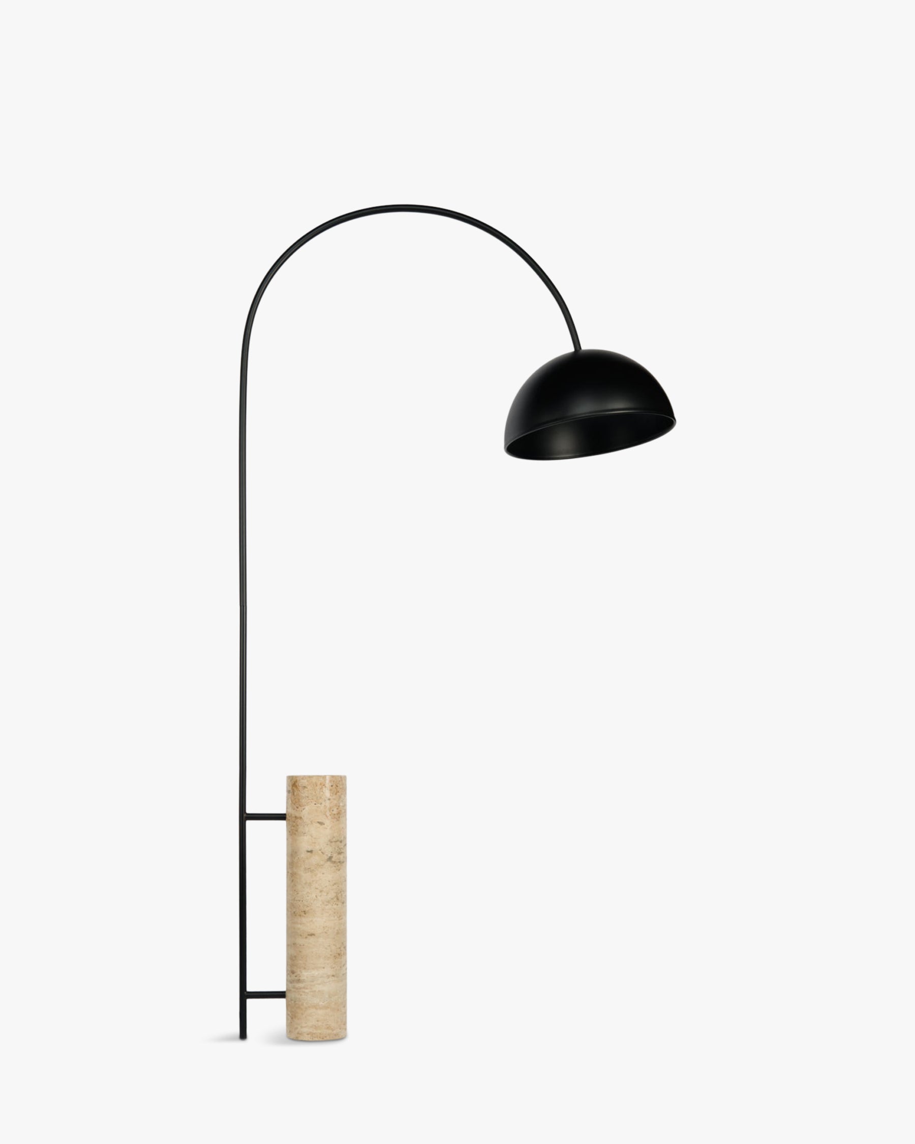 Stehlampe, Schwarzes Metall & natürlicher Travertin, H162