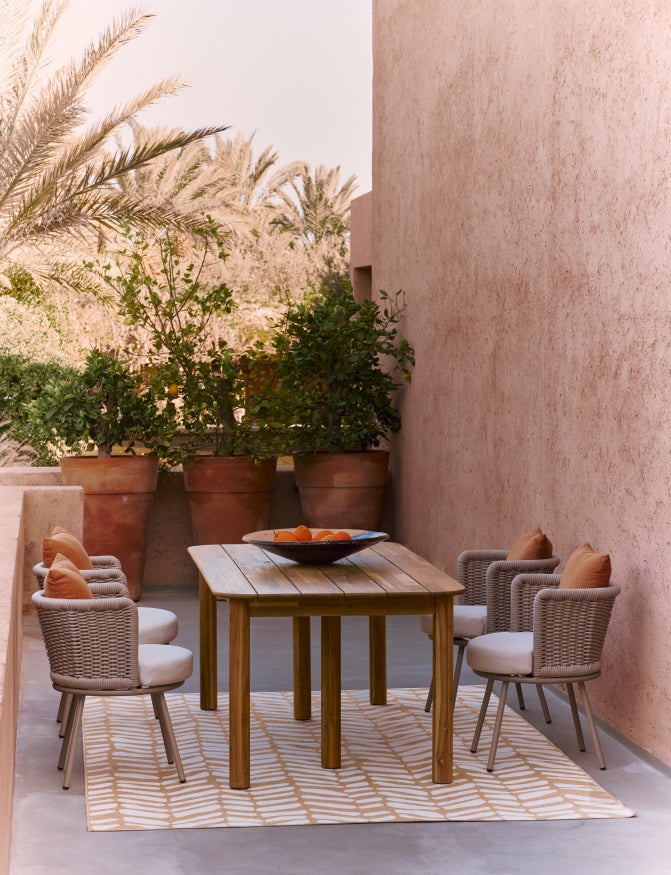 Unsere Rückgabebedingungen lesenStuhl FLORENTINO aus Aluminium, terracottafarbenen Kissen und taupefarbener Bespannung für einen mediterranen Stil und optimalen Komfort.