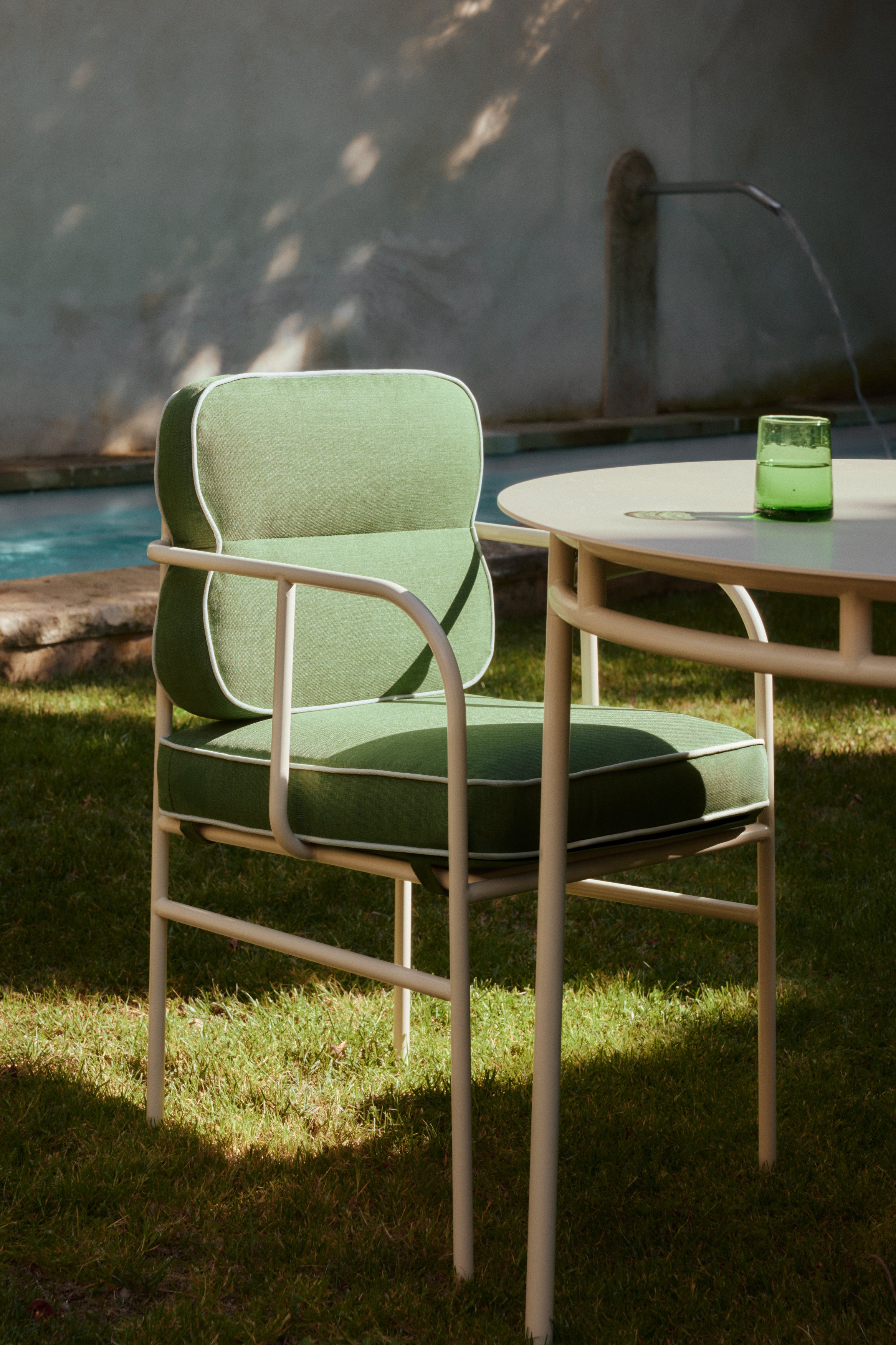 Gartenstuhl mit Armlehnen, Wiesengrün & Beiges Metall