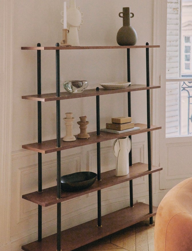 Unsere Rückgabebedingungen lesenDas Bücherregal HAWKING aus Holz und Metall vereint Kapazität und verspieltes Design für eine moderne Einrichtung.