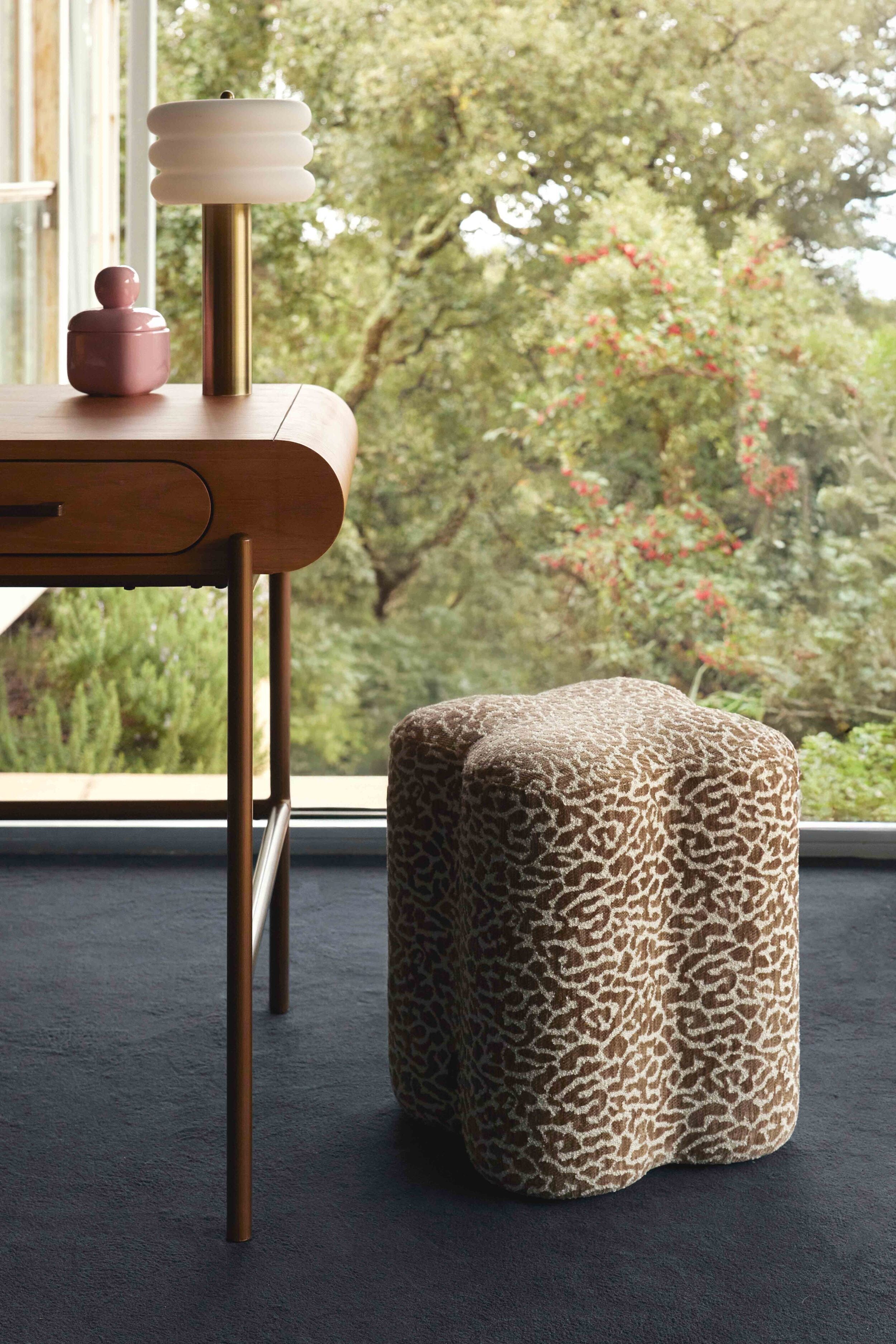 Pouf, Stoff in Leopardenbraun, H46