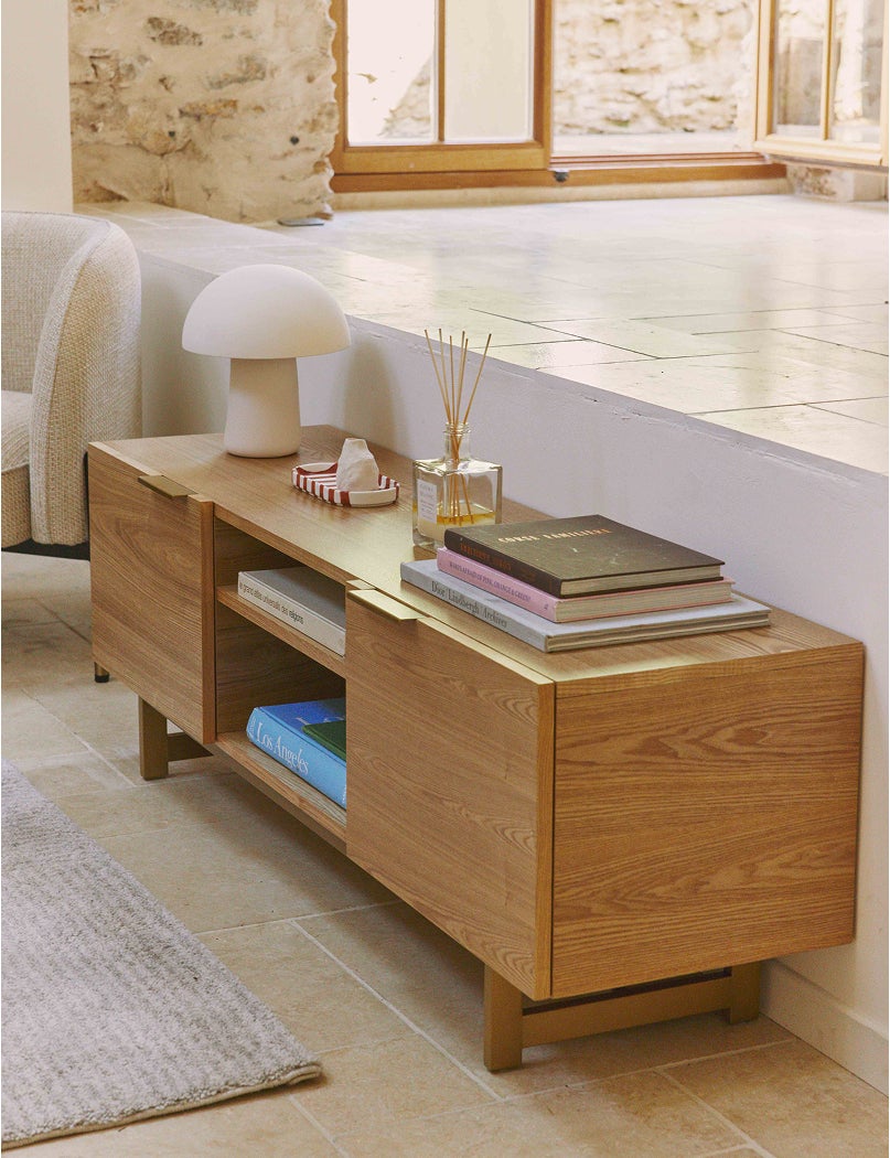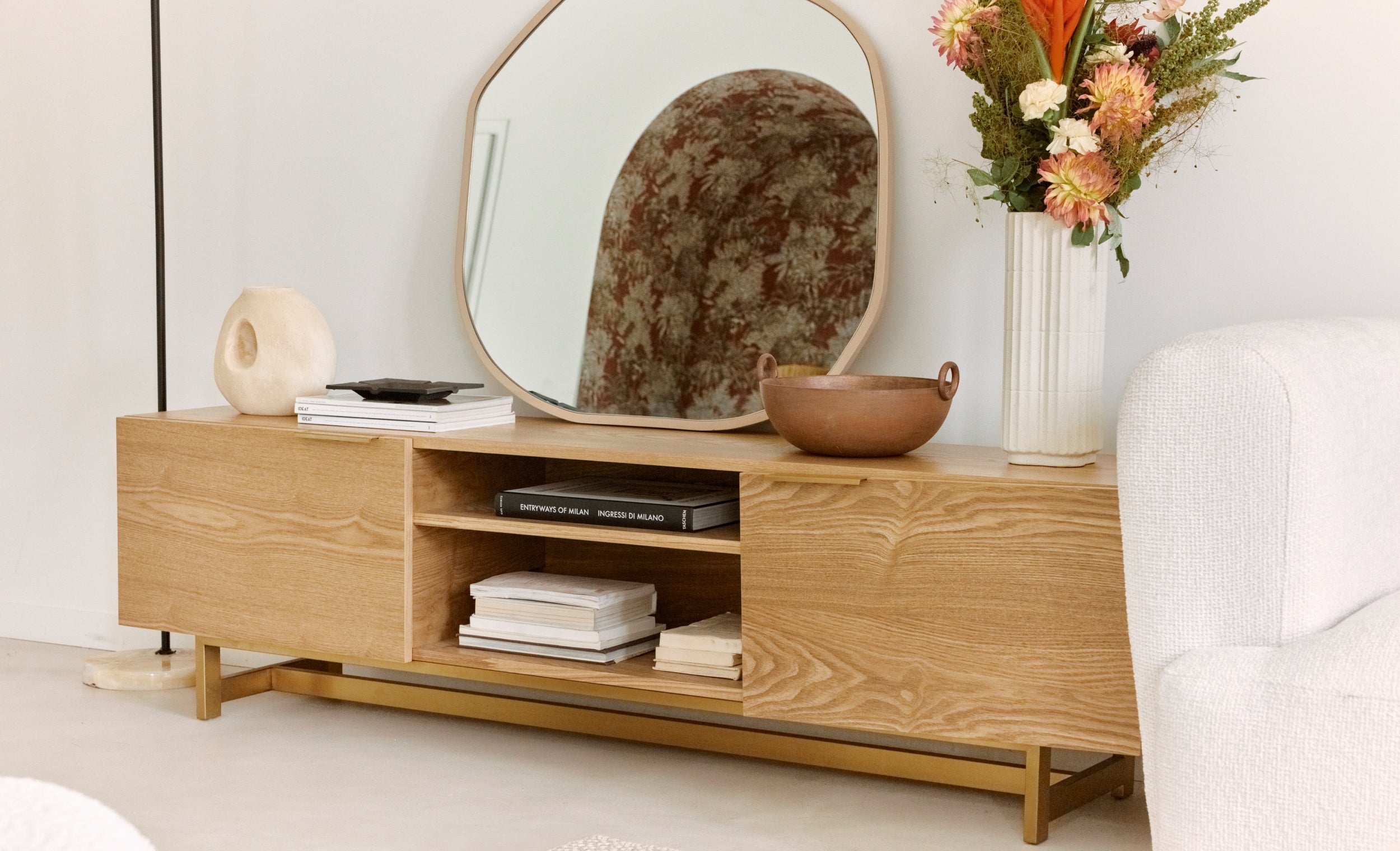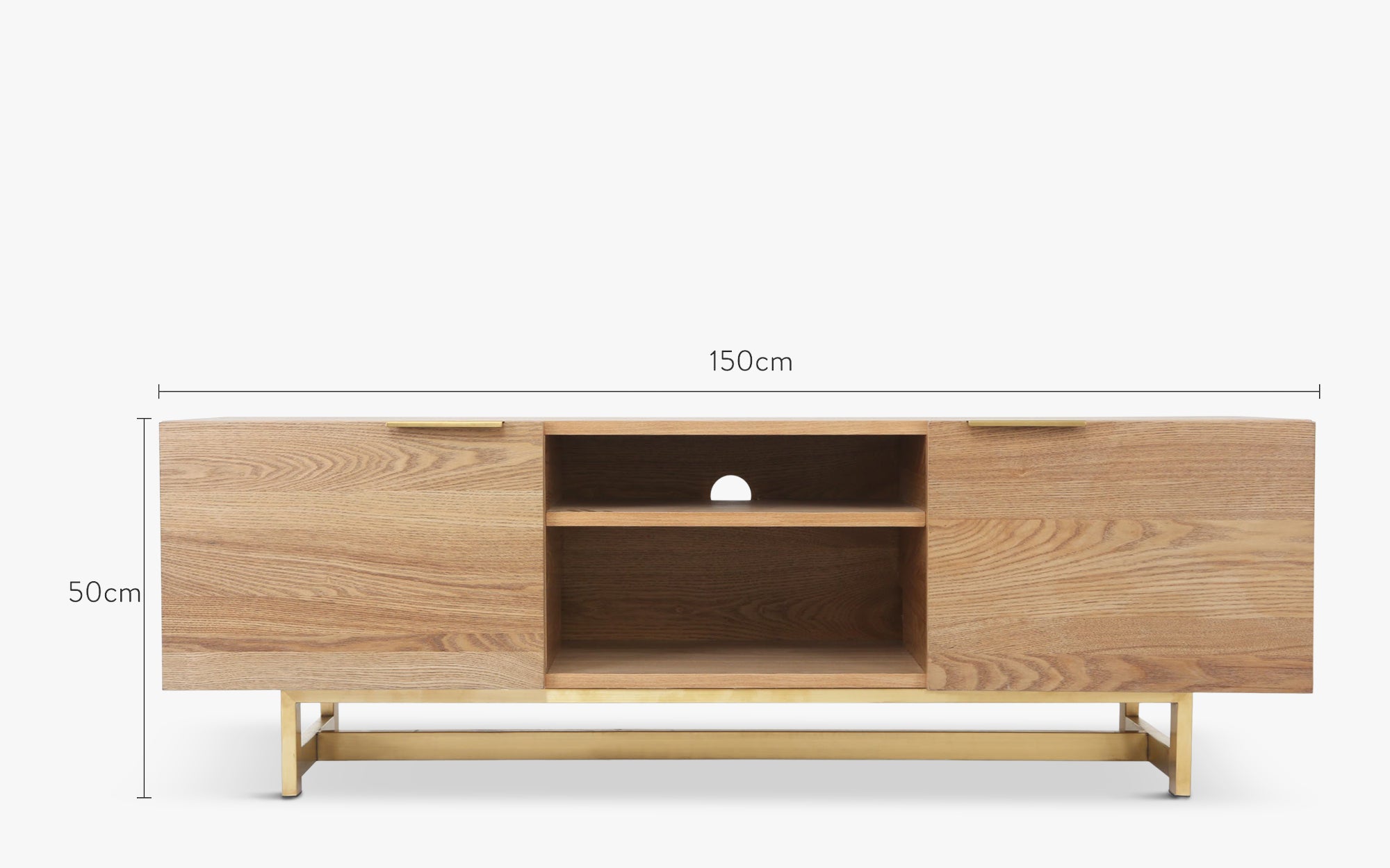 TV-Lowboard, naturbelassenes Holz & Messing, B150