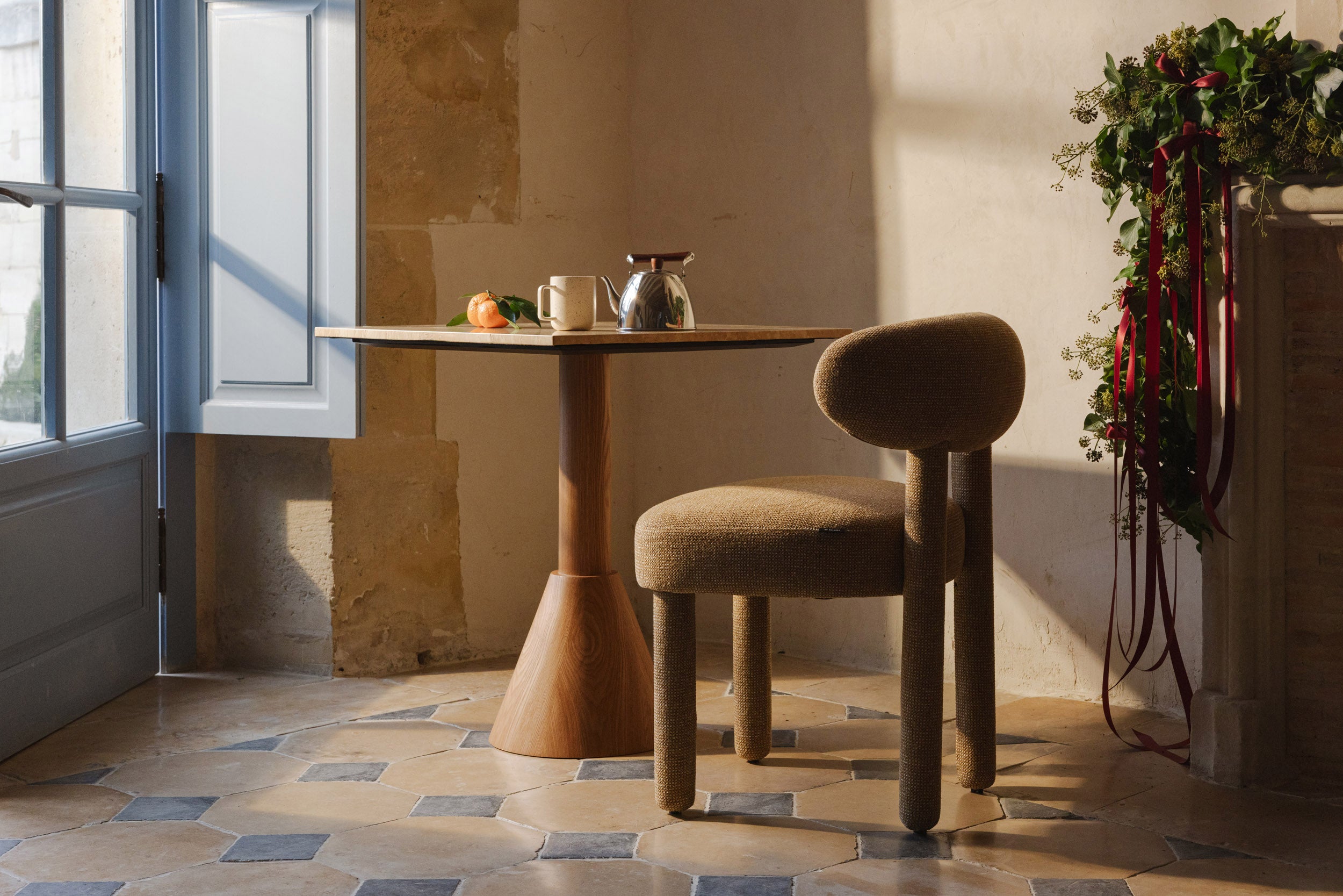Set: Drehstuhl + Schreibtisch, Tweed in Miami Gelb & Holz