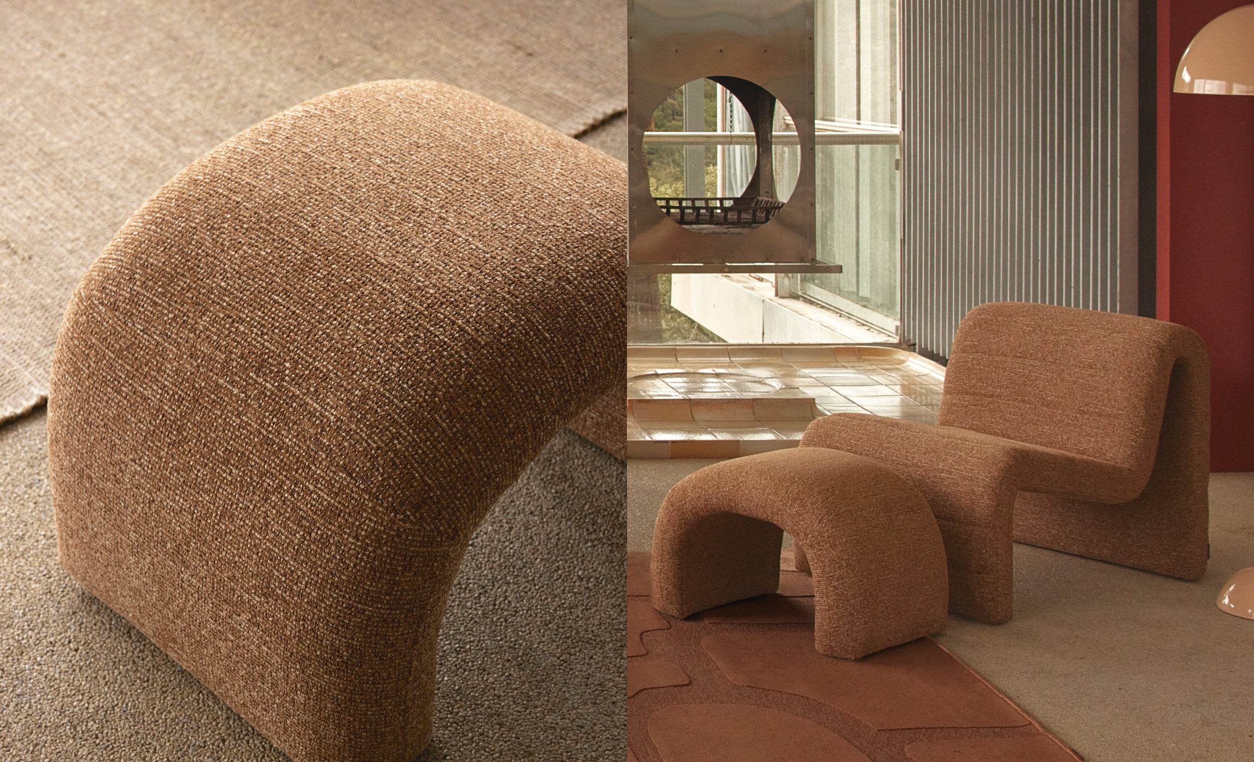 Set: Sessel + Fußhocker im Set, Tweed in Braun