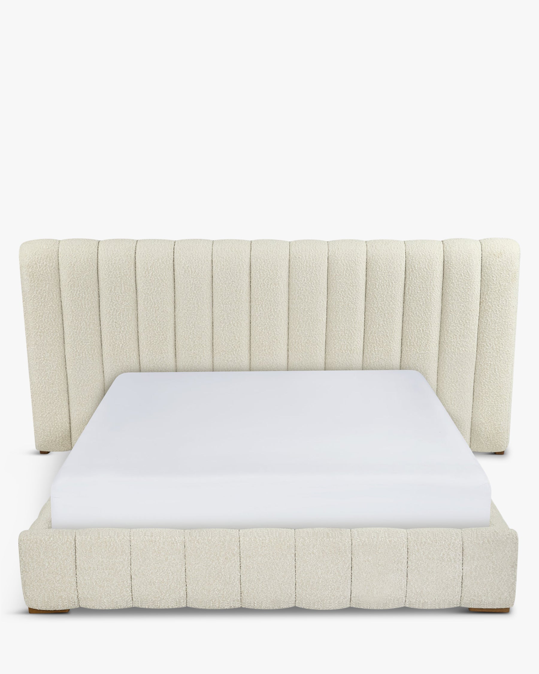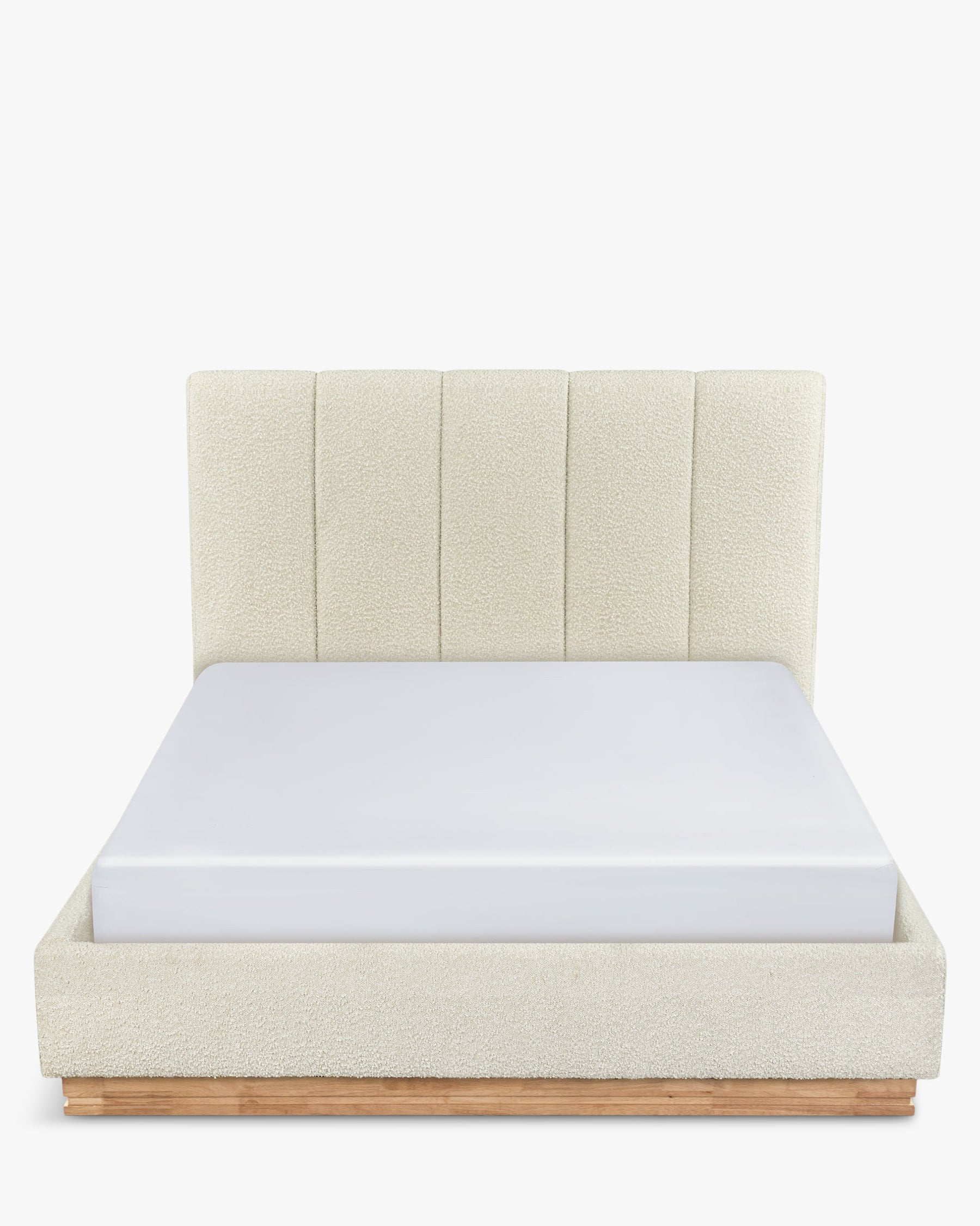 Normaler Preis CHF 1,189Bett 180x200, Bouclé Stoff in Oatmeal Weiß & Holz