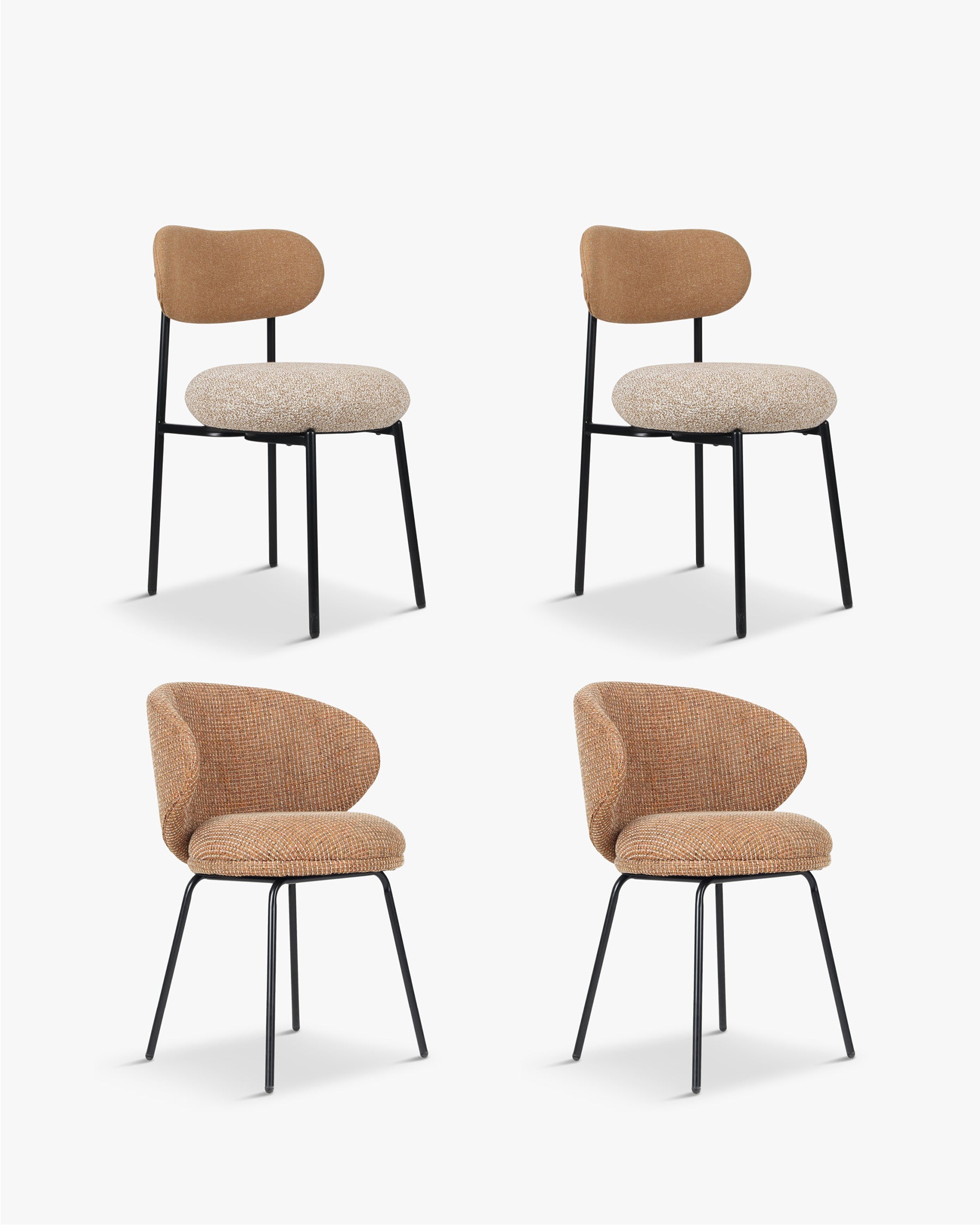 Set: 6x Stühle - Tweed in Taupe & schwarzes Metall