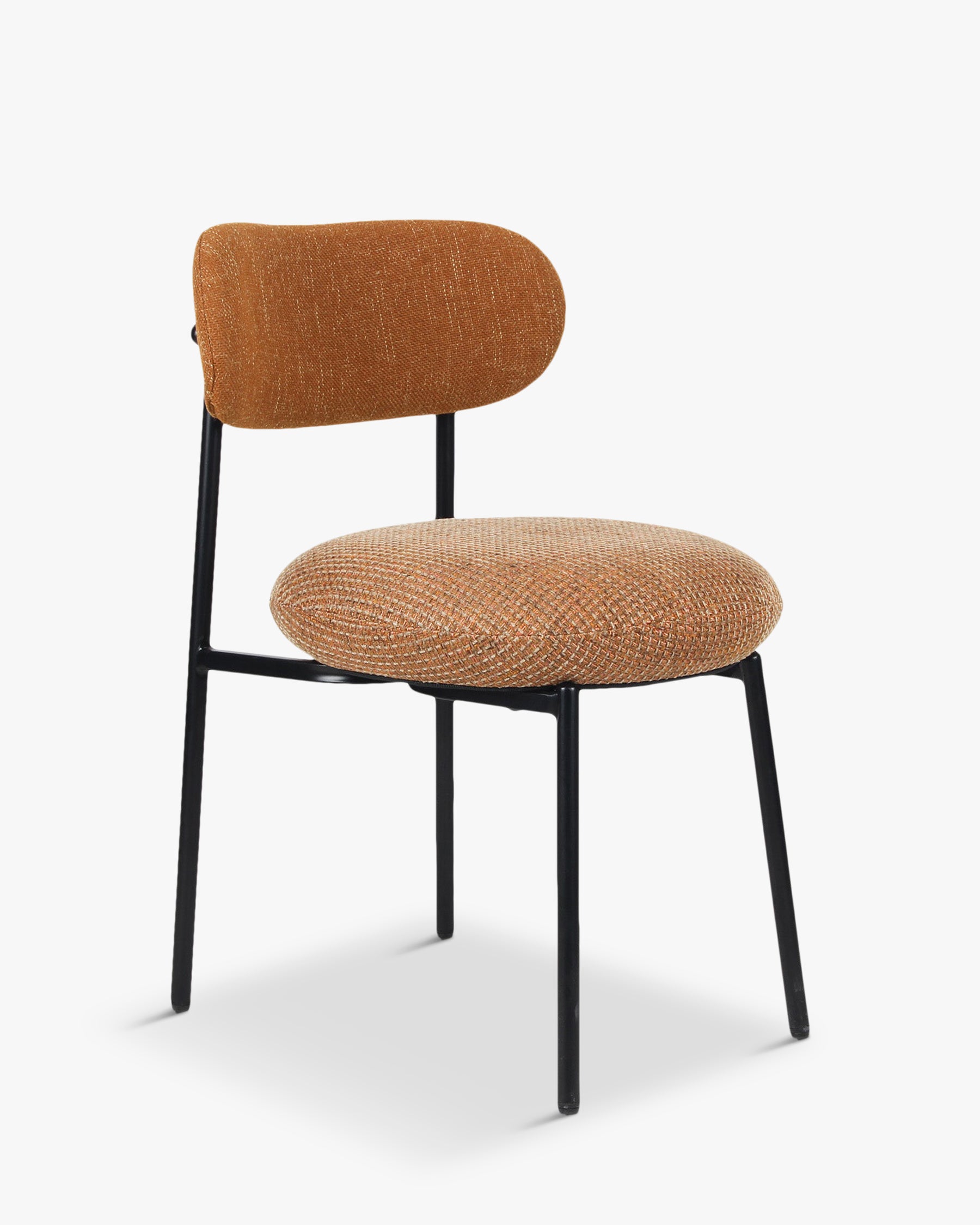 Stuhl, Tweed in Miami Orange + Ziegelrot & schwarzes Metall
