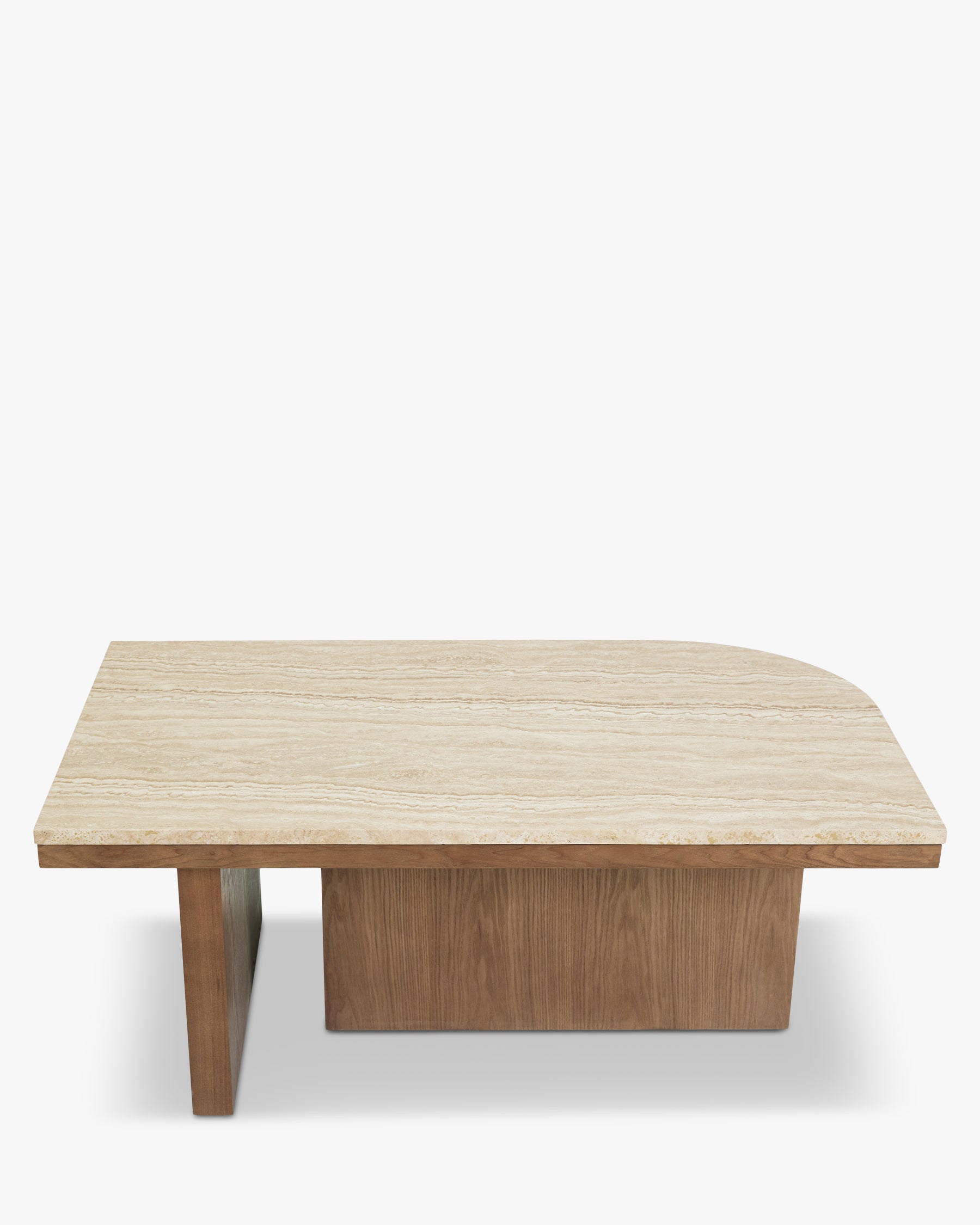Couchtisch, Travertin & Holz in Wallnussbraun, B100