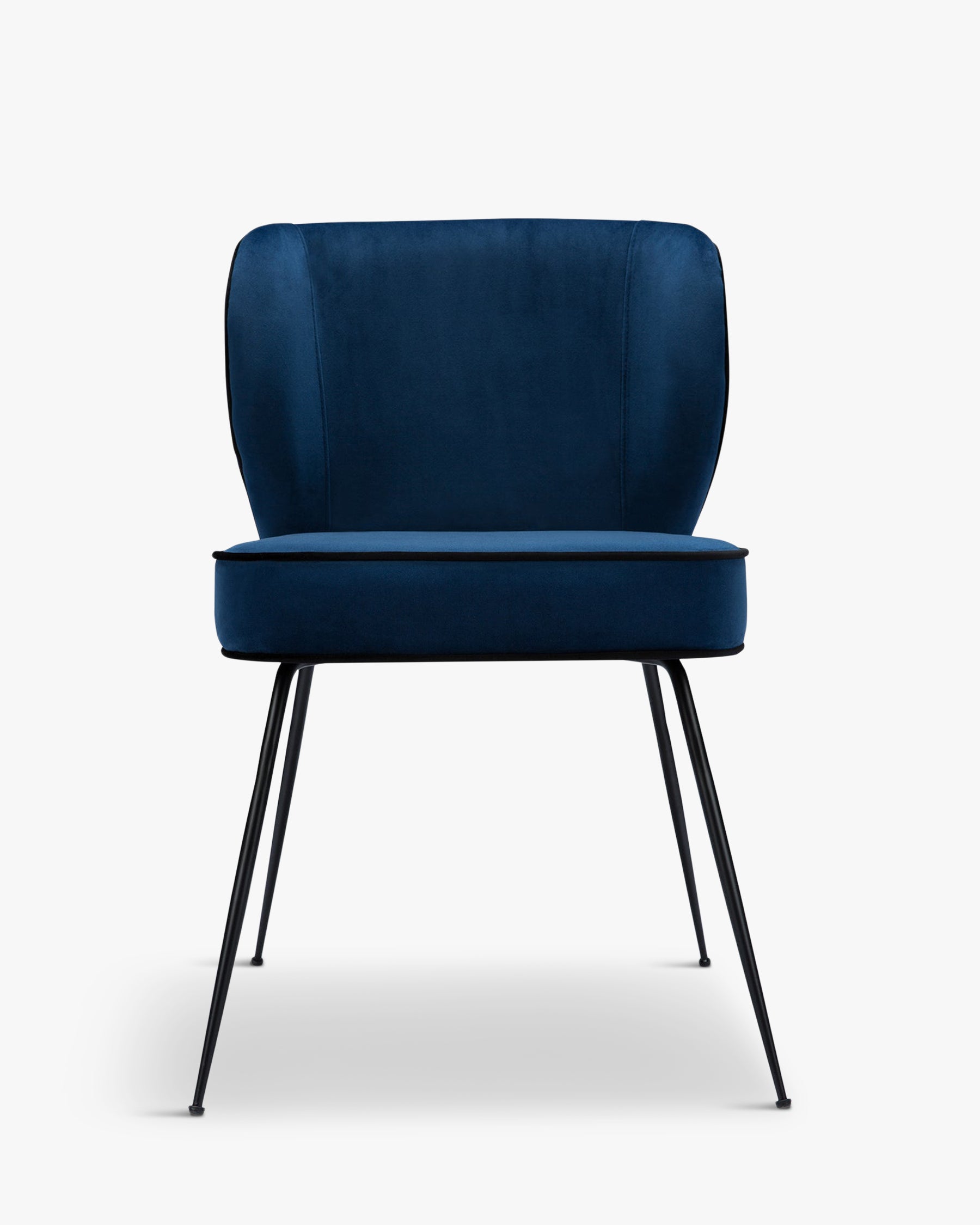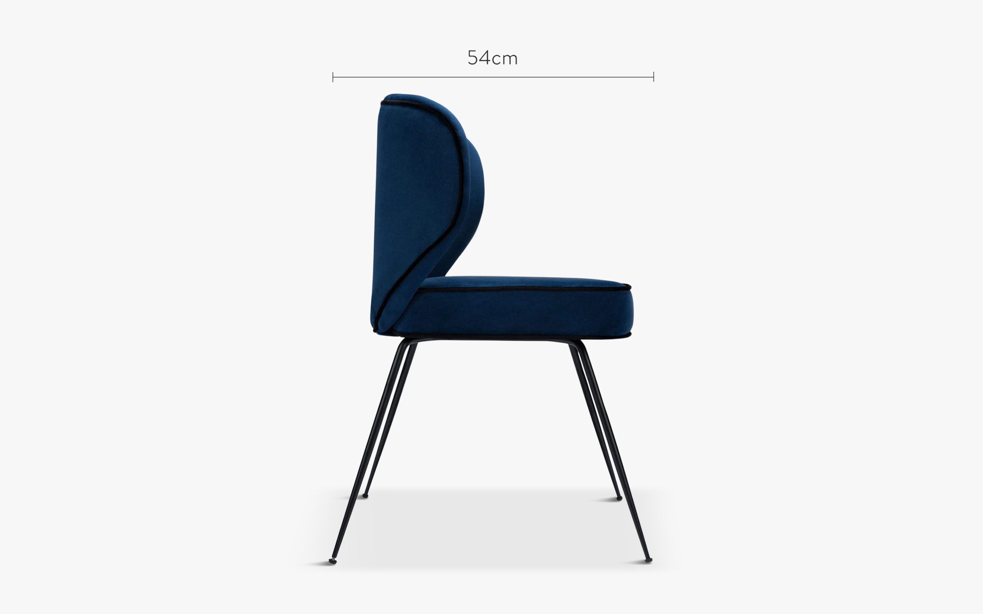 Polsterstuhl, Samt in Nachtblau & schwarzes Metall