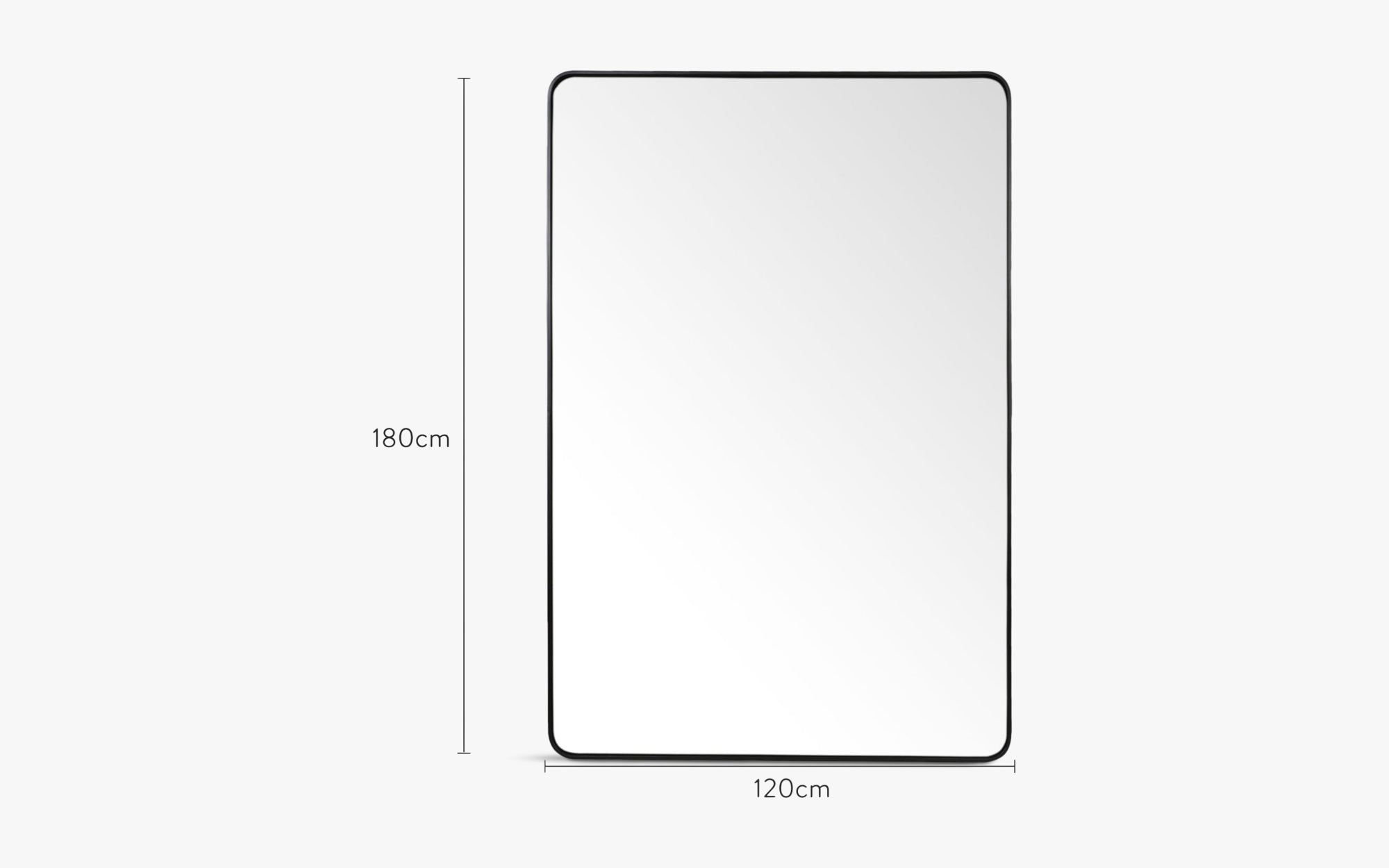 Mit seinem eleganten, mattschwarzen Metallrahmen stellt euch SILENCE in den Vordergrund. Mit diesem 180x120 cm großen Spiegel werdet ihr eure schönsten Outfits im besten Licht bewundern können.