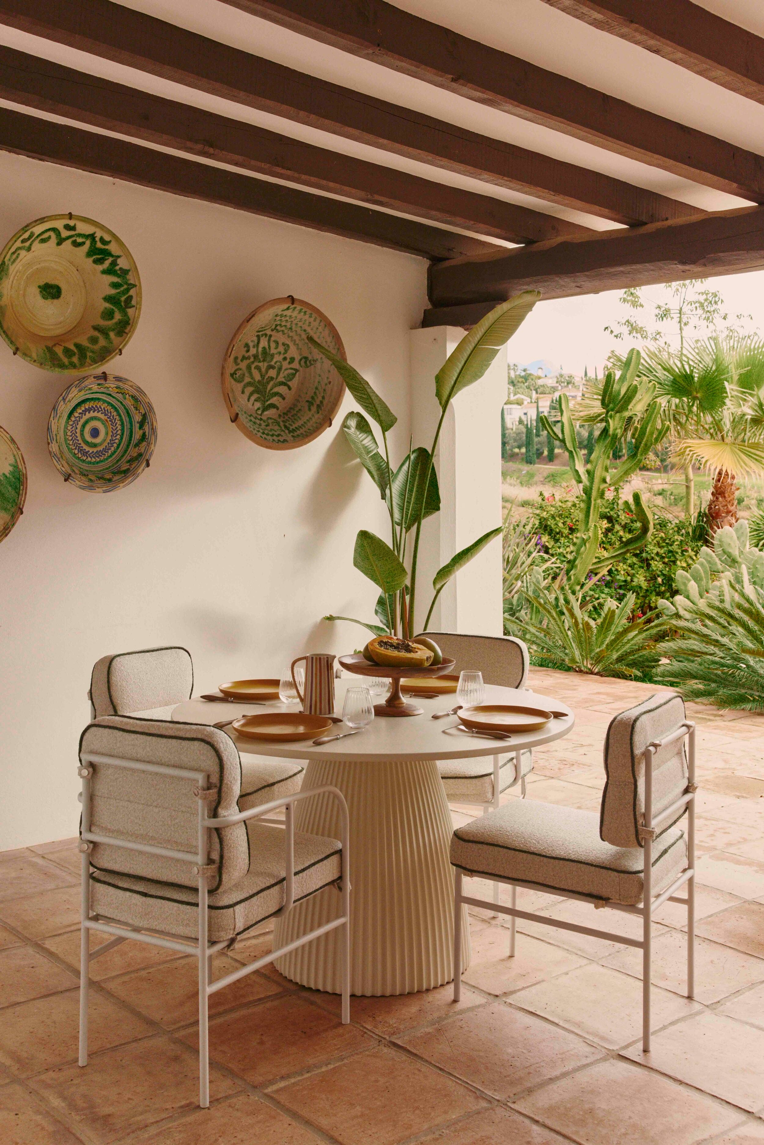 Unsere Rückgabebedingungen lesenRobuster und zeitloser MADDALENA-Stuhl, wetterfest und UV-beständig, perfekt für den Innen- und Außenbereich.