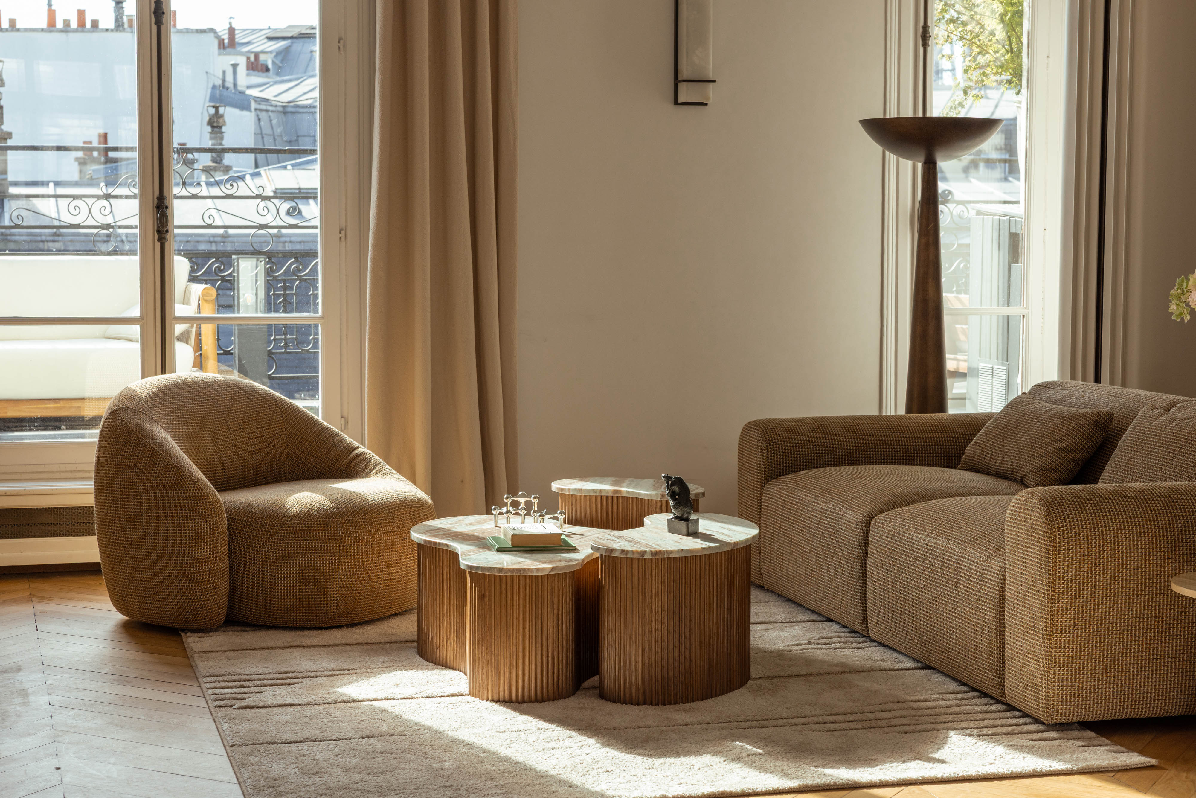 Unsere Rückgabebedingungen lesenDie Couchtische ISLETA, eine Kombination aus blondem Eschenholz und Kanta-Marmor, bieten ein organisches und zugleich strukturiertes Design, das sich ganz nach Ihren Wünschen zusammenstellen lässt.