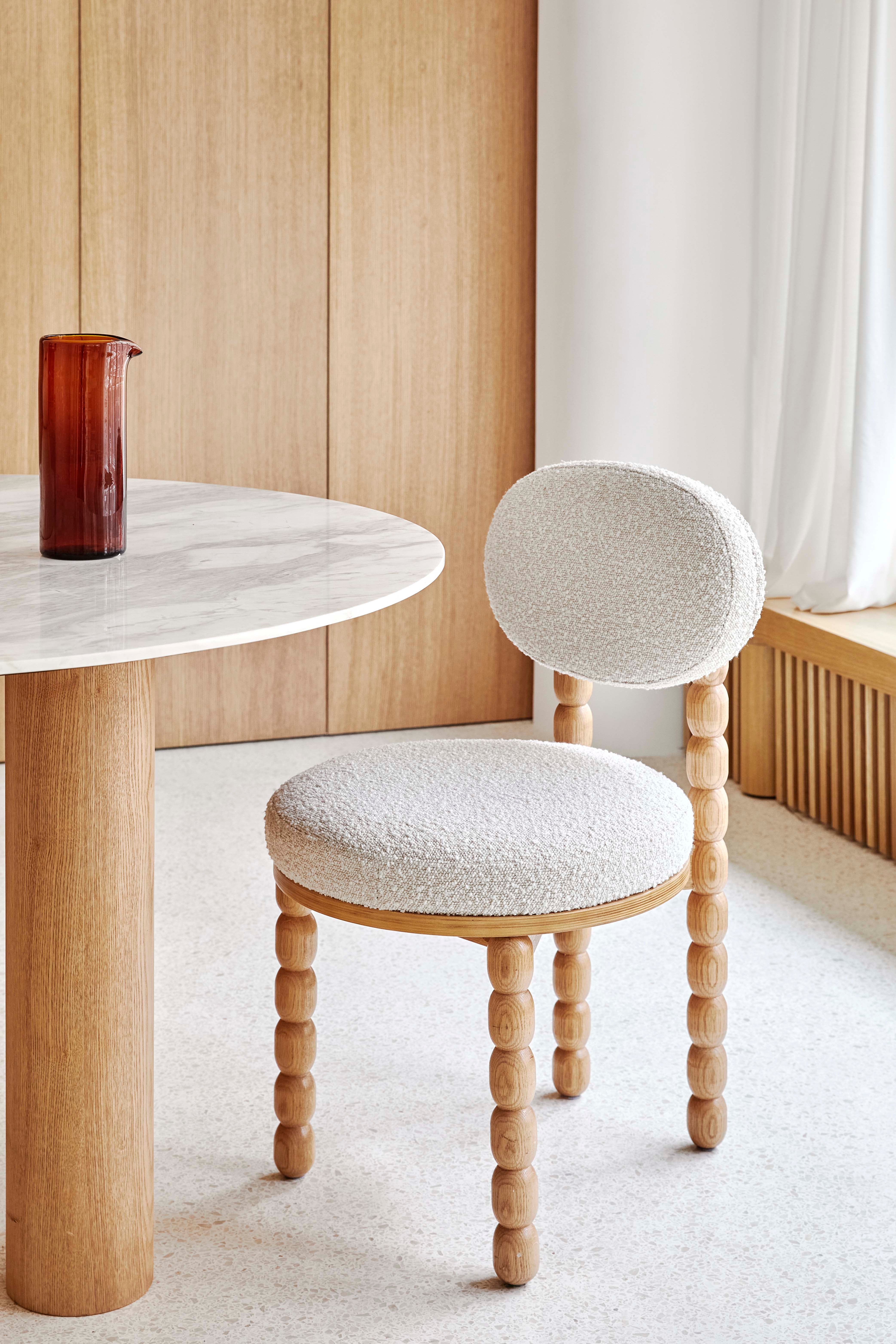 Stuhl, Haferweiß gelockt & Eichenholz
