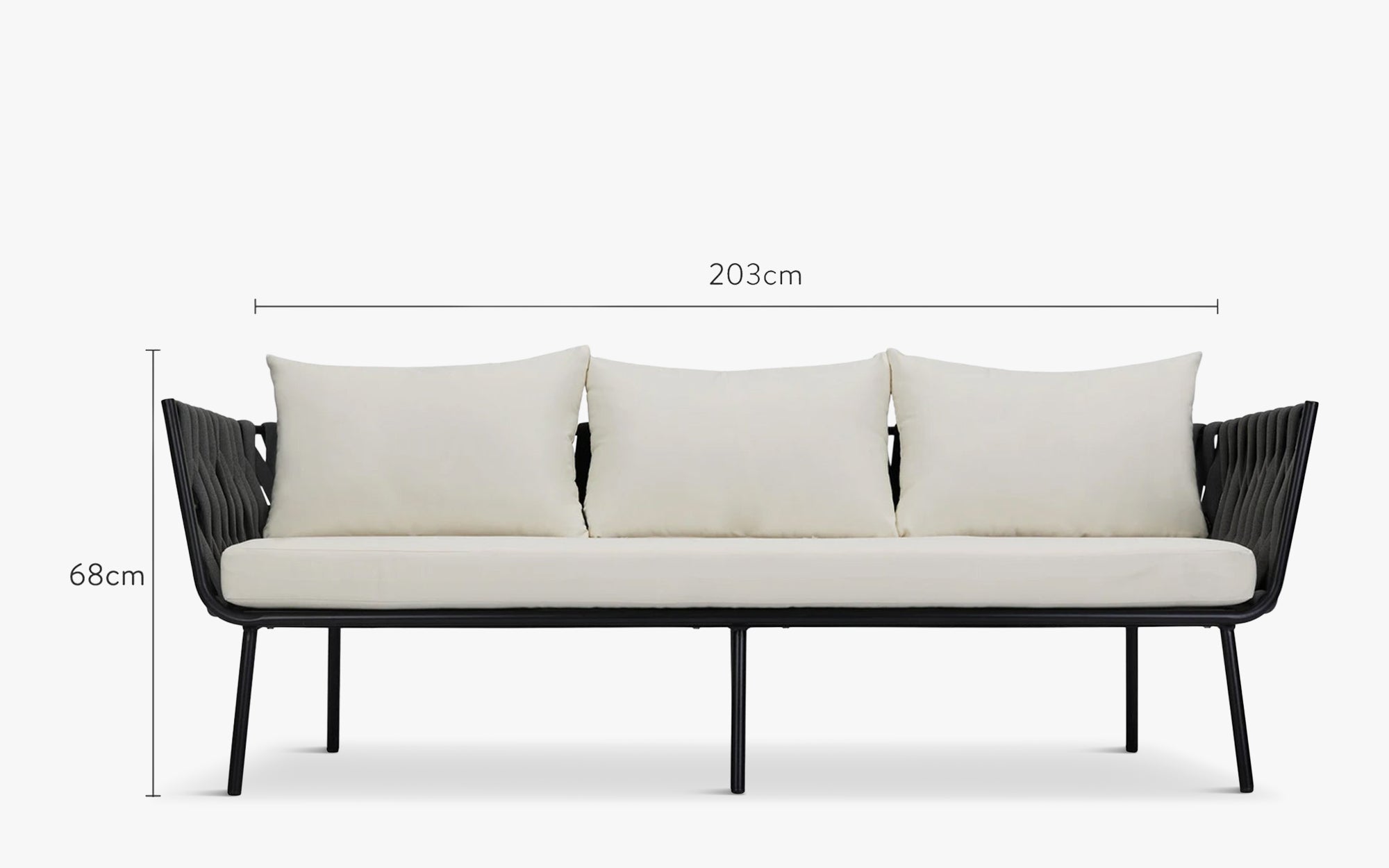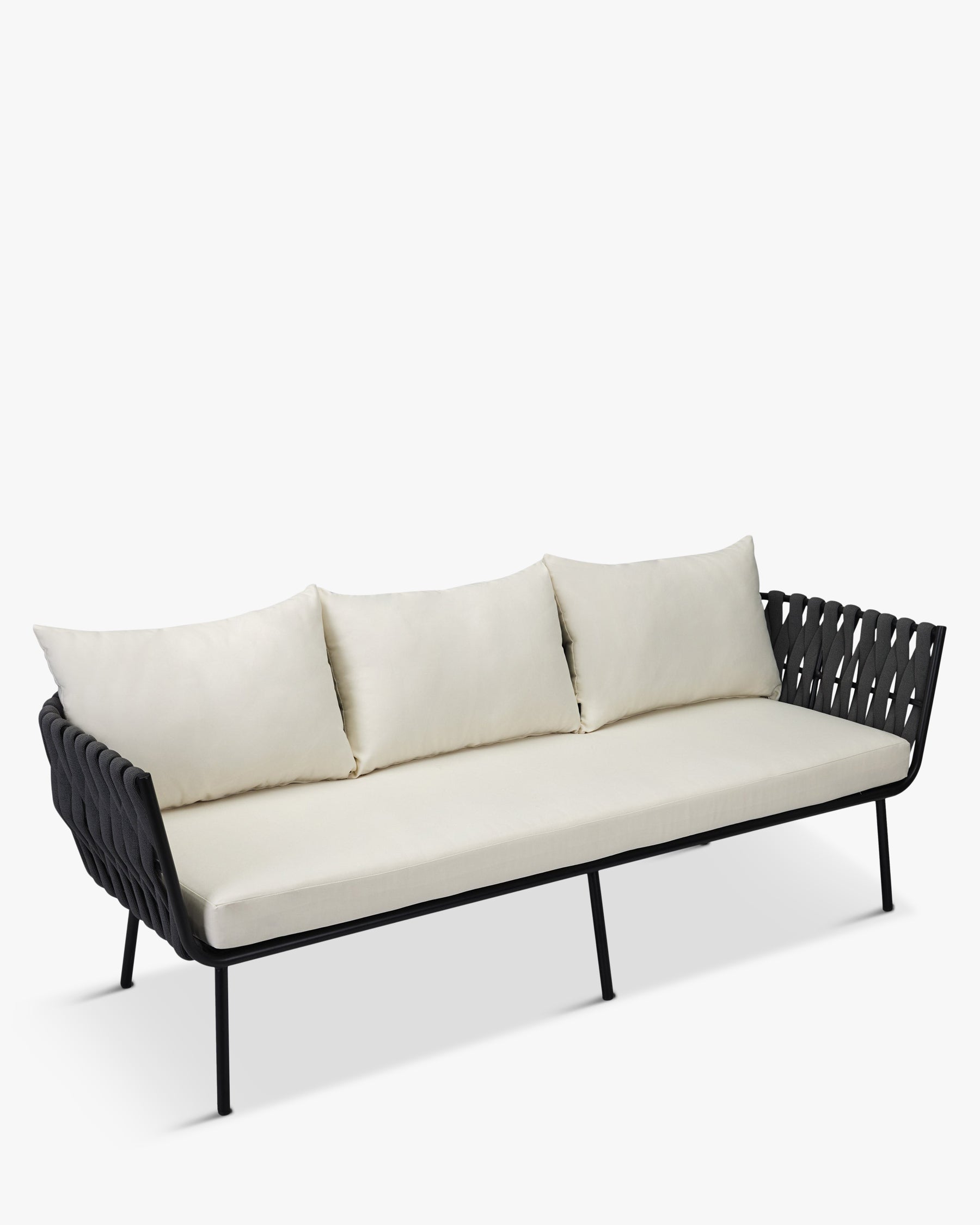 3-Sitzer Gartensofa, Kissen in Beige & schwarzes Geflecht