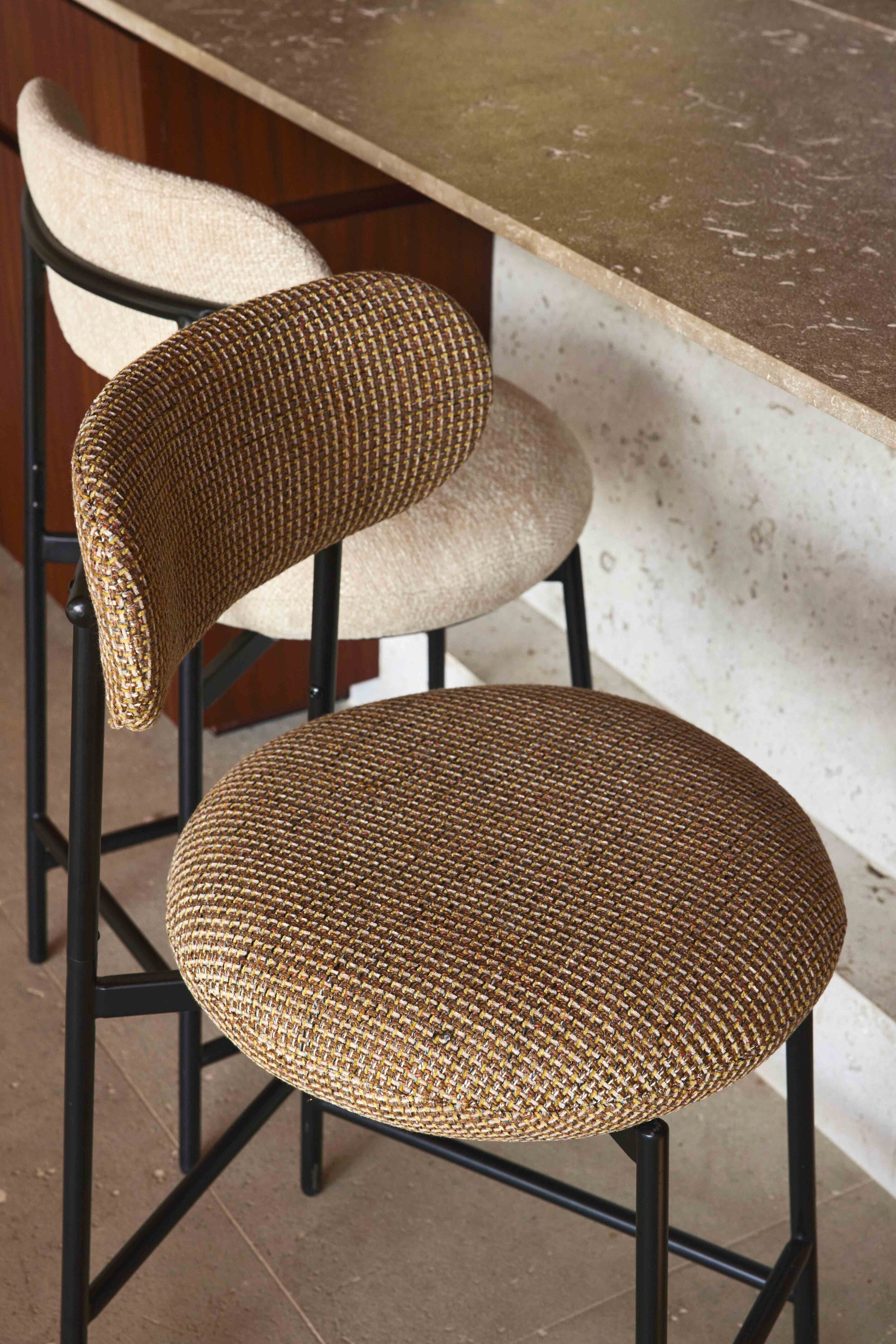 Barstuhl, Tweed in Miami Gelb & schwarzes Metall