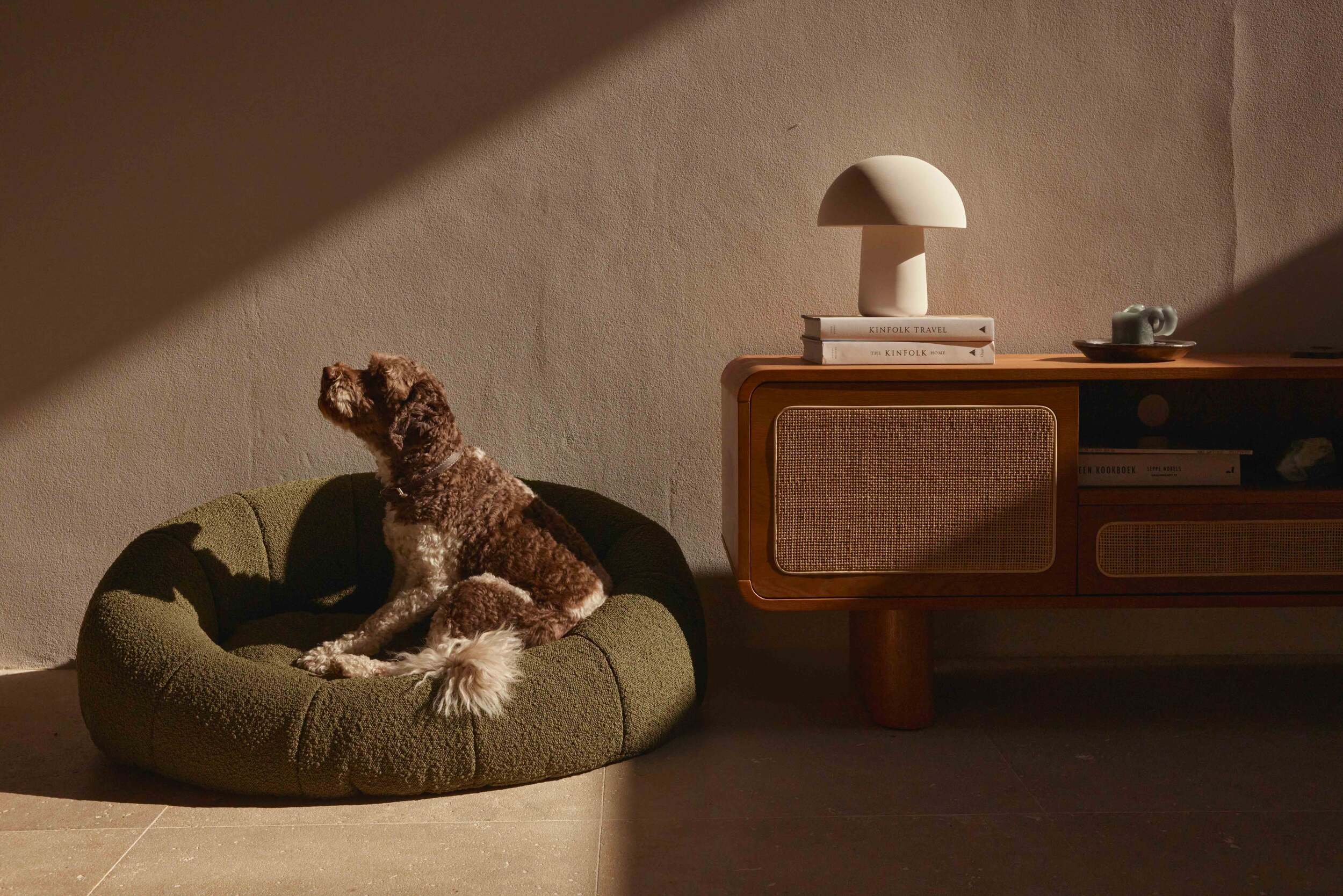 Hundekorb, Bouclé Stoff in Khaki, B100