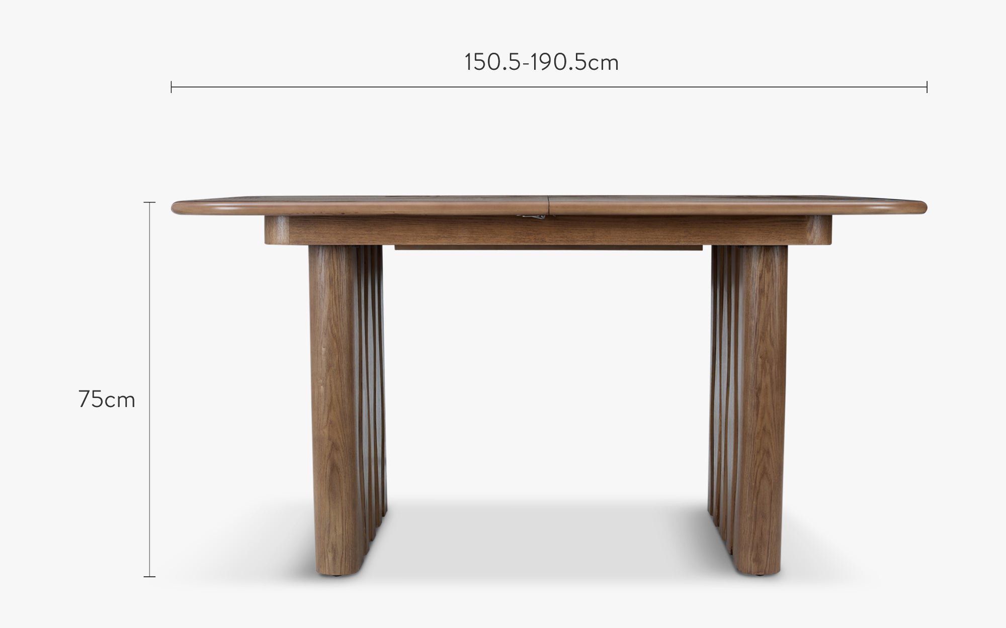 Ausgestattet mit einem integrierten Auszugssystem passt sich der ausziehbare Esstisch ONDULA flexibel an den Alltag an – von einem kompakten Format bis hin zu einer großzügigen Größe für Familie und Gäste. Die Nussbaumtönung hebt die natürlichen Holzmaserungen hervor und verleiht dem Tisch Wärme und Tiefe. Die Tischbeine sorgen nicht nur für eine starke optische Wirkung, sondern bieten auch hervorragende Stabilität.