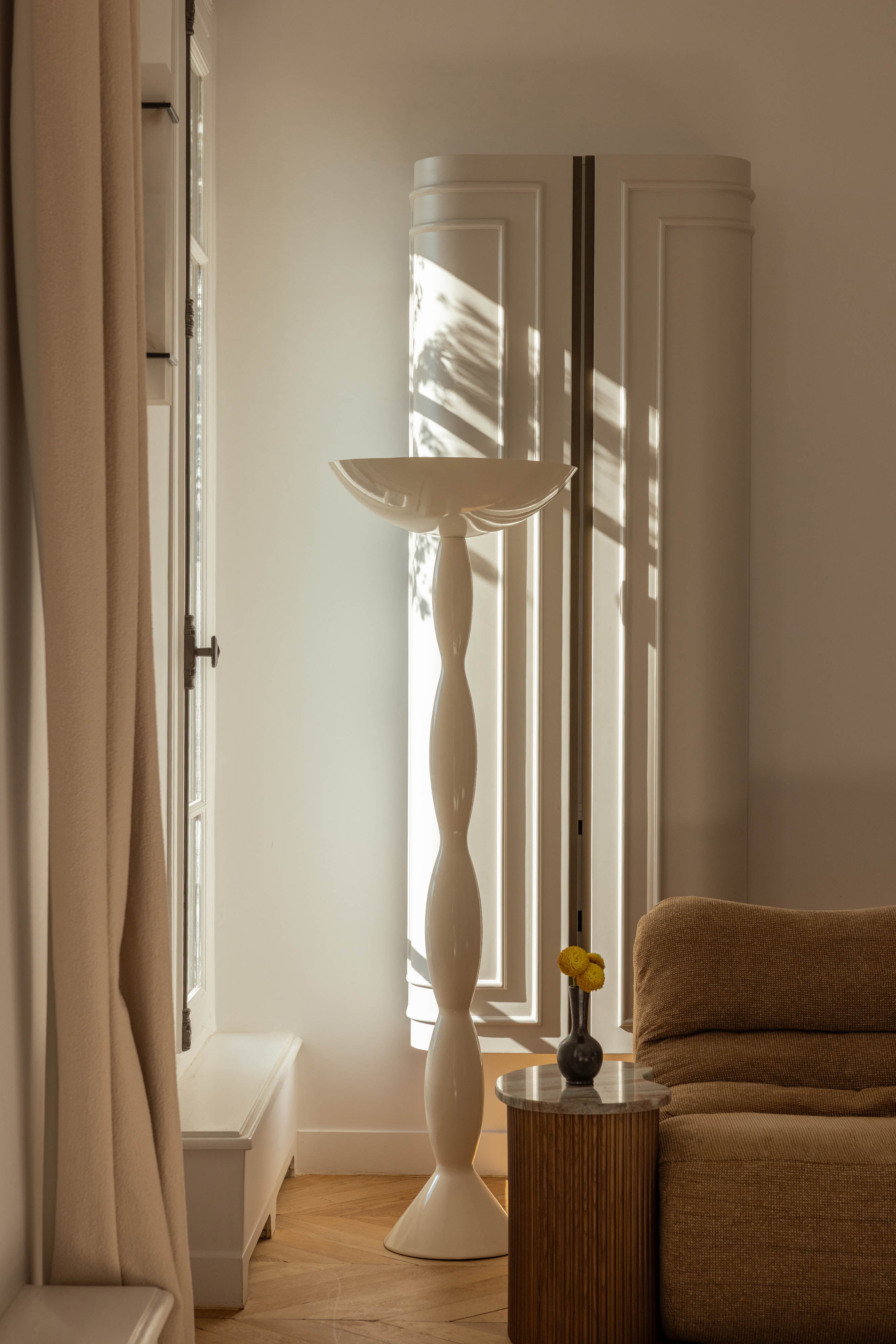 Unsere Rückgabebedingungen lesenStehleuchte ARDENIA, weißes Halogen, florale und poetische Silhouette, organisches und zeitgenössisches Design.