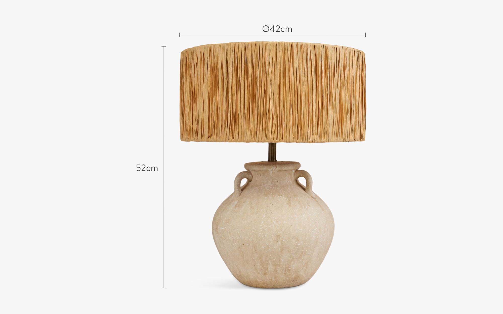 Unsere Rückgabebedingungen lesenDie Tischlampe POMPEI kombiniert einen mediterranen Sockel und einen natürlichen Lampenschirm für eine warme und authentische Atmosphäre.