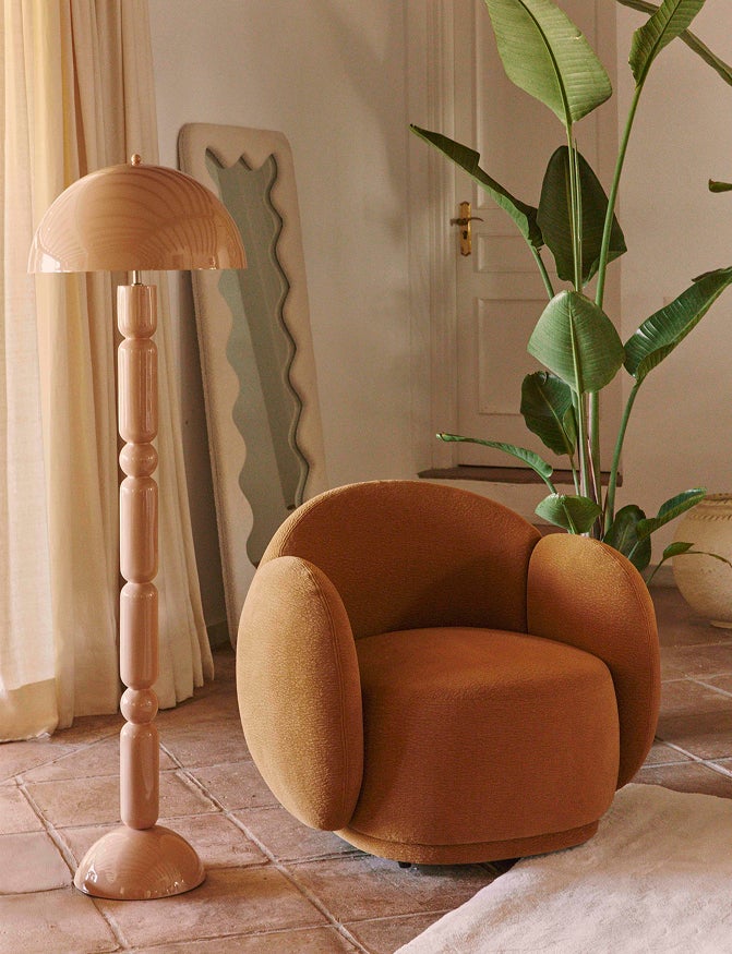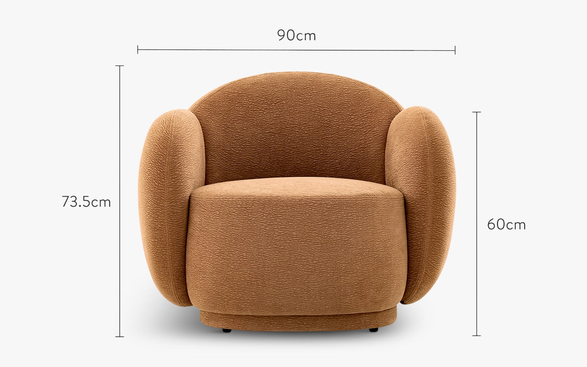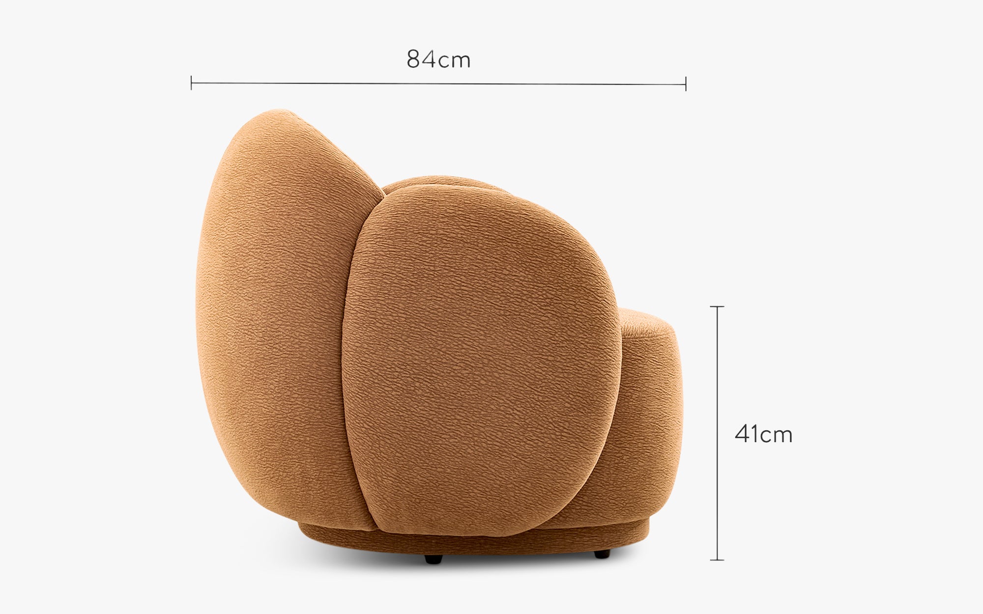 Read our returns policyCocoon chair with camel, white and ocher shades, warm and elegant design, centerpiece adaptable to any interior style.