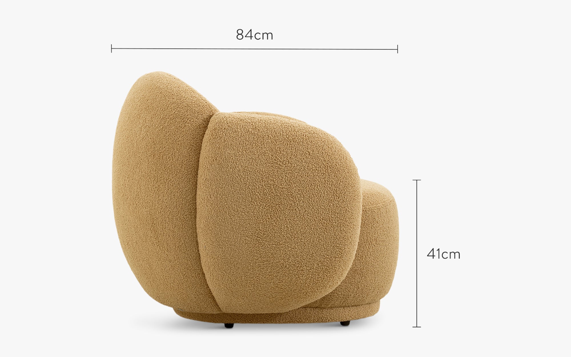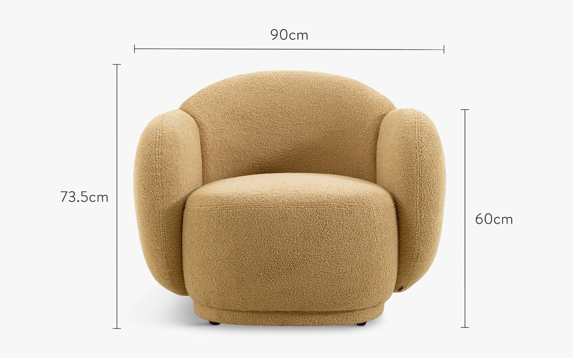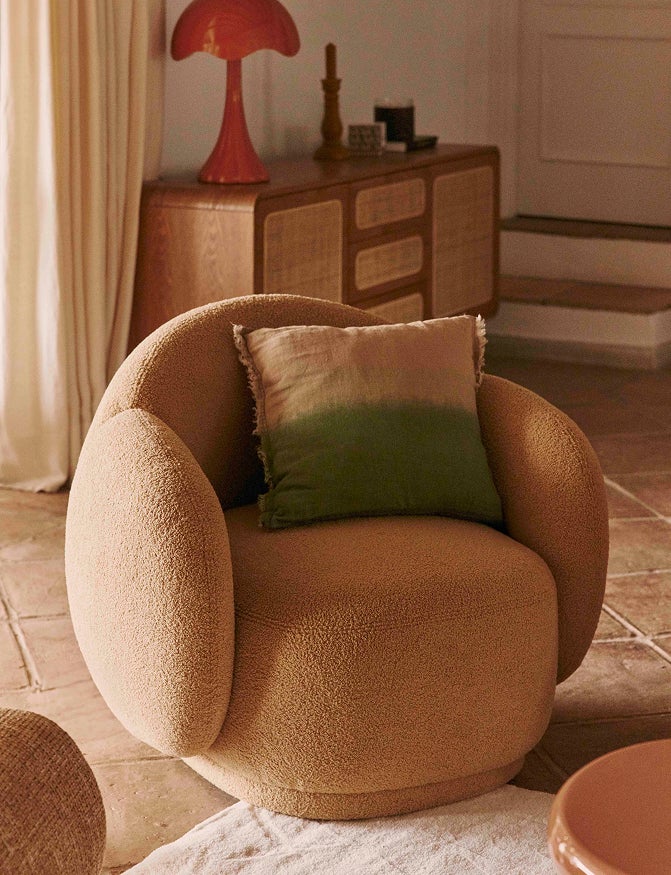 Read our returns policyCocoon chair with camel, white and ocher shades, warm and elegant design, centerpiece adaptable to any interior style.