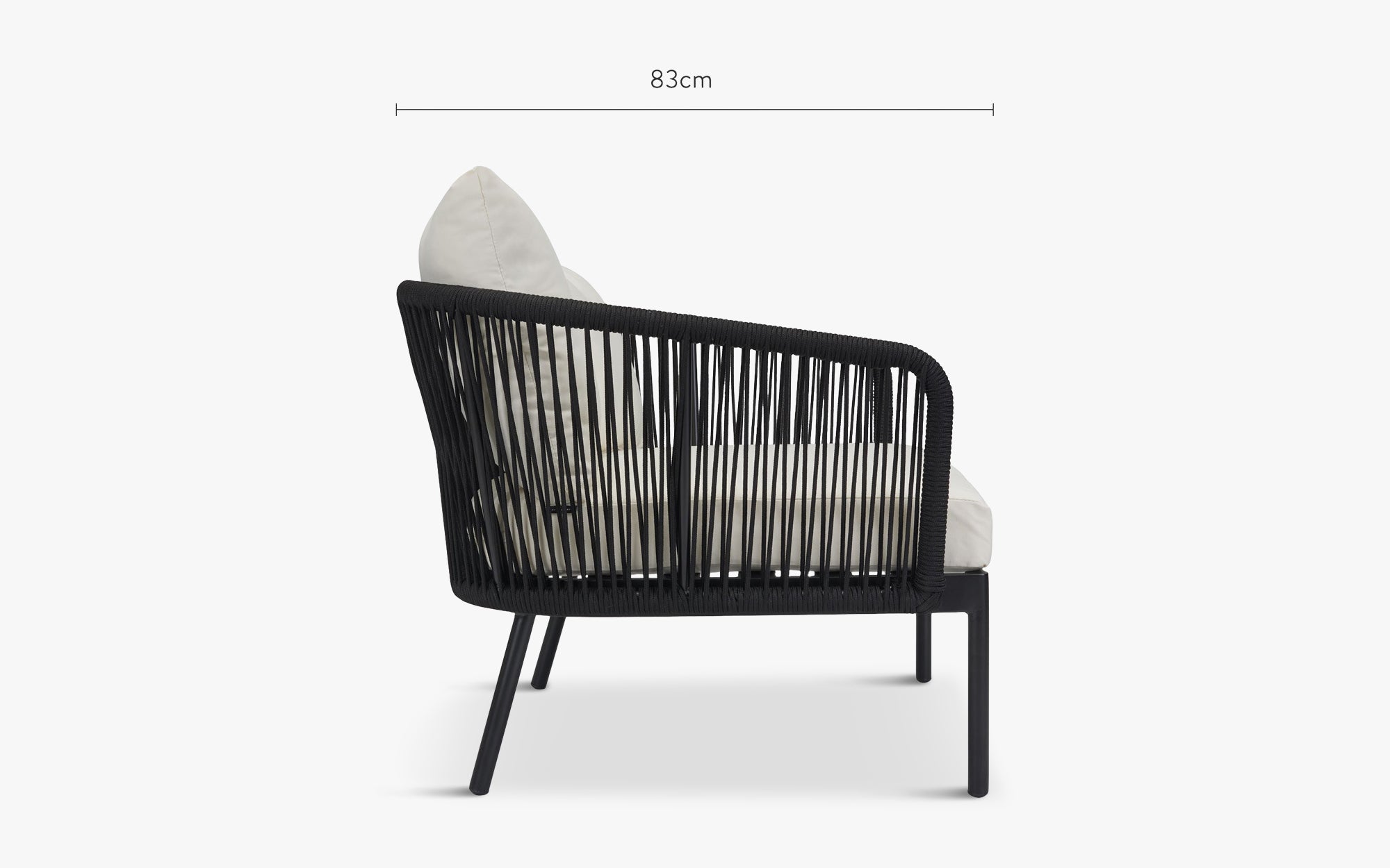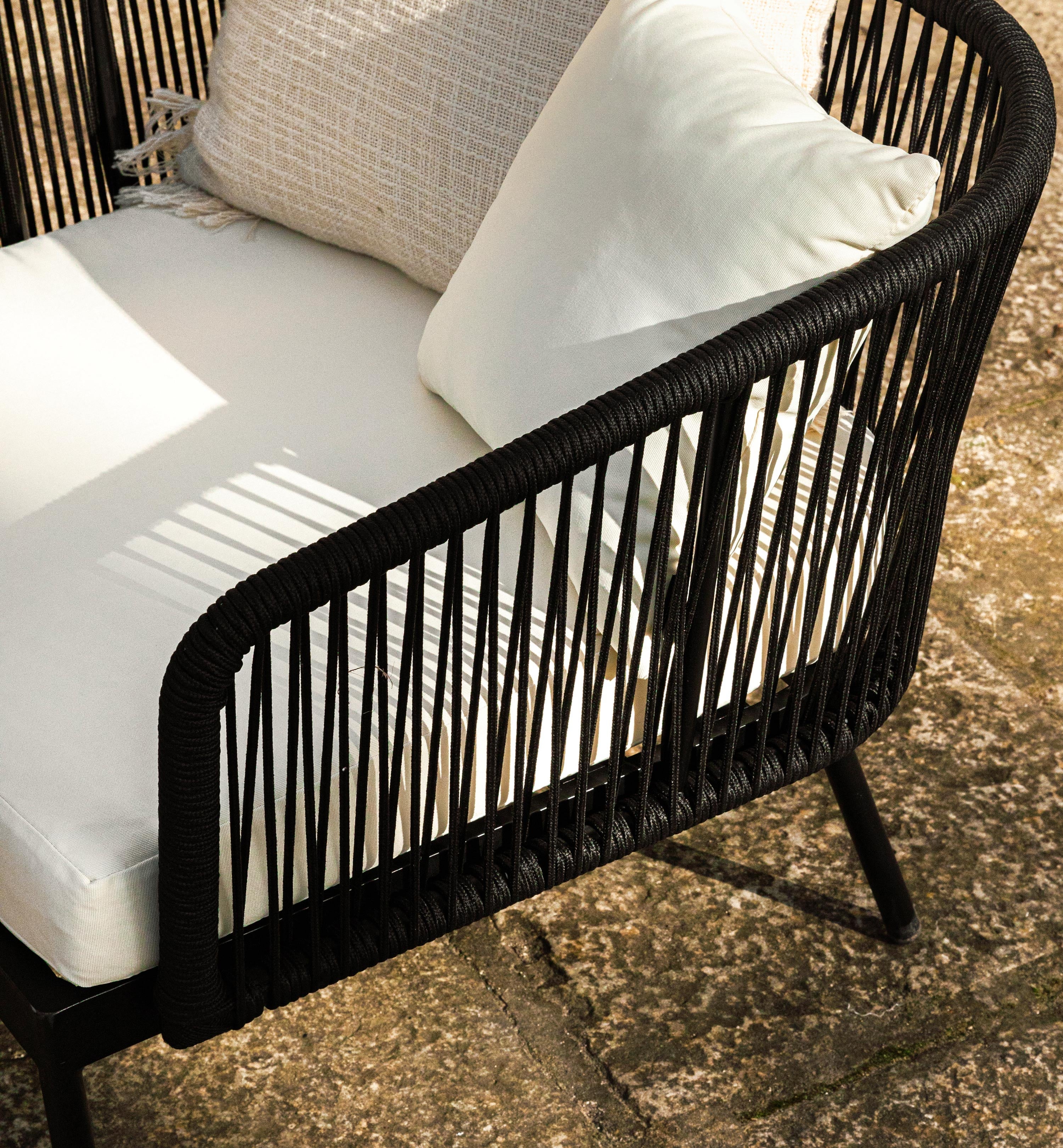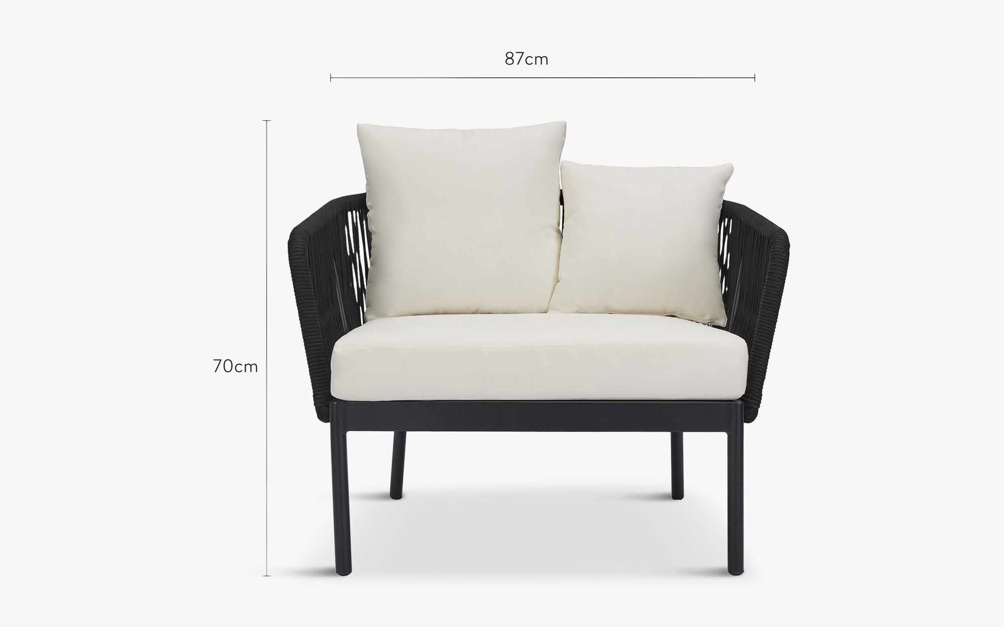 Outdoor armchair, Vanilla cream seat, Black cord & metal, 70x87