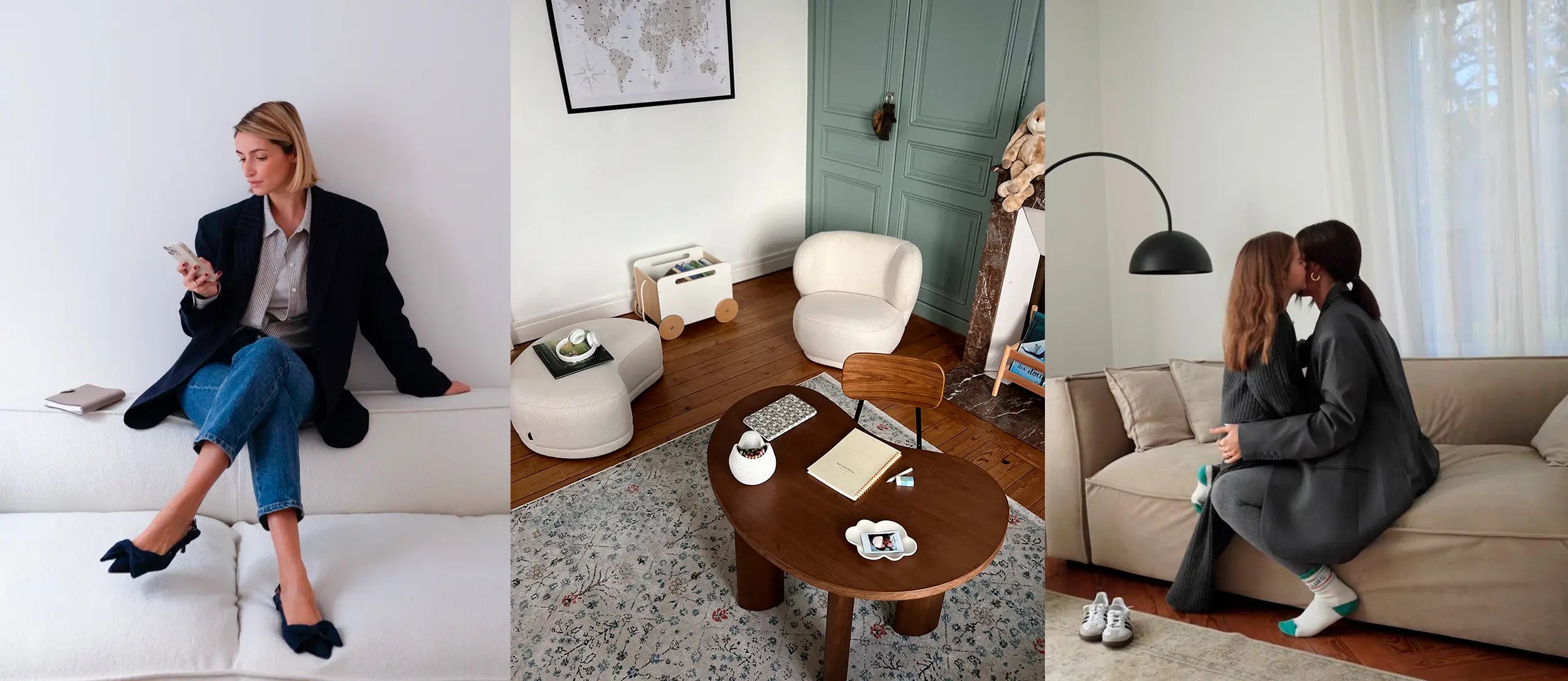 Manon: Once I've got up, washed and dressed, I make myself a coffee while making breakfast with my daughters. I take it in turns to drop them off at school at 8:30 a.m. and then head off to my office to work with my collaborator Camille, or to a meeting or shoot in Paris. We love testing out new addresses and taking advantage of the opportunity to create content, as there are so many places in Paris that inspire me. Then it's back to the office or a 5 p.m. meeting, back to school to pick up the girls, and back to my life as a mom until they go to bed. Then I'm off to work on the computer, or to catch up on a series with my husband. I usually go to bed around 10-11pm max, and then I'm off again.