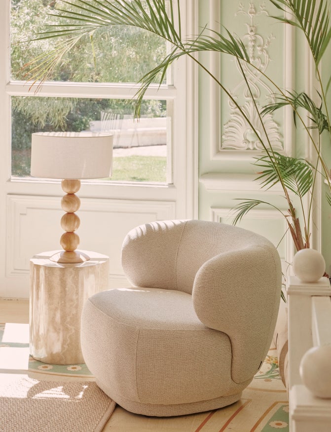 We dream of curling up in the GIULIA armchair! Our designers have reinterpreted the 70's design to bring you a real cosy and enveloping comfort. With its rounded and organic shape, the design of the GIULIA armchair is close to the ground and seduces with its generous proportions - seat depth: 142x53 cm. Its back and seat are made of high density foam - guaranteed without feather stuffing (!) - to offer a soft and relaxing comfort. It is dressed by a rust-colored curl with very cozy accents.