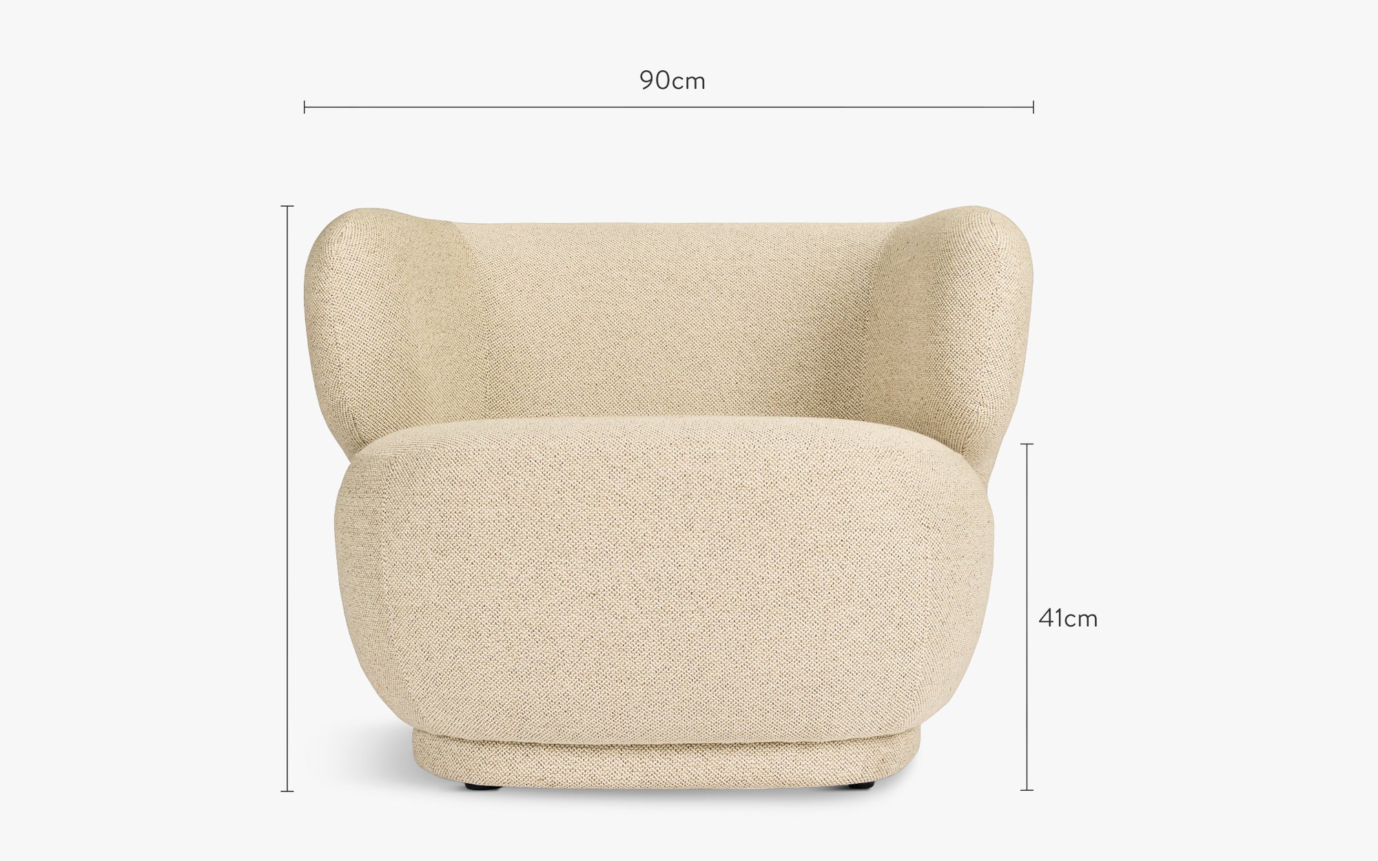 Giulia armchair, design 70 rounded and close to the floor, sitting in high density foam and rust curl for cozy and enveloping comfort.