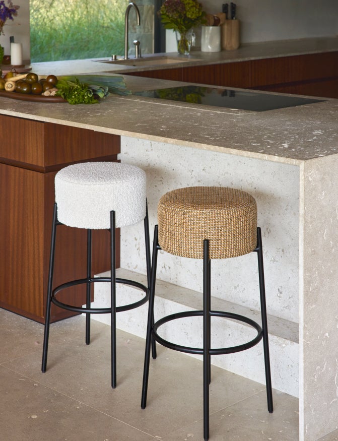 Read our returns policyThe bismi marie stool metallic robustness and soft sitting, available in white, beige and yellow curl for a modular style.