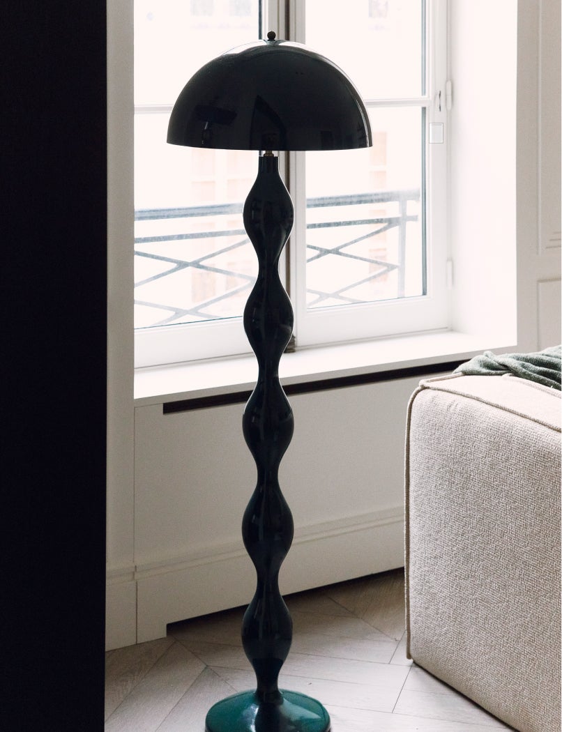 Read our returns policyPowers floor lamp, retro design, petinated oil polyresin petroleum, circular and elegant lampshade.