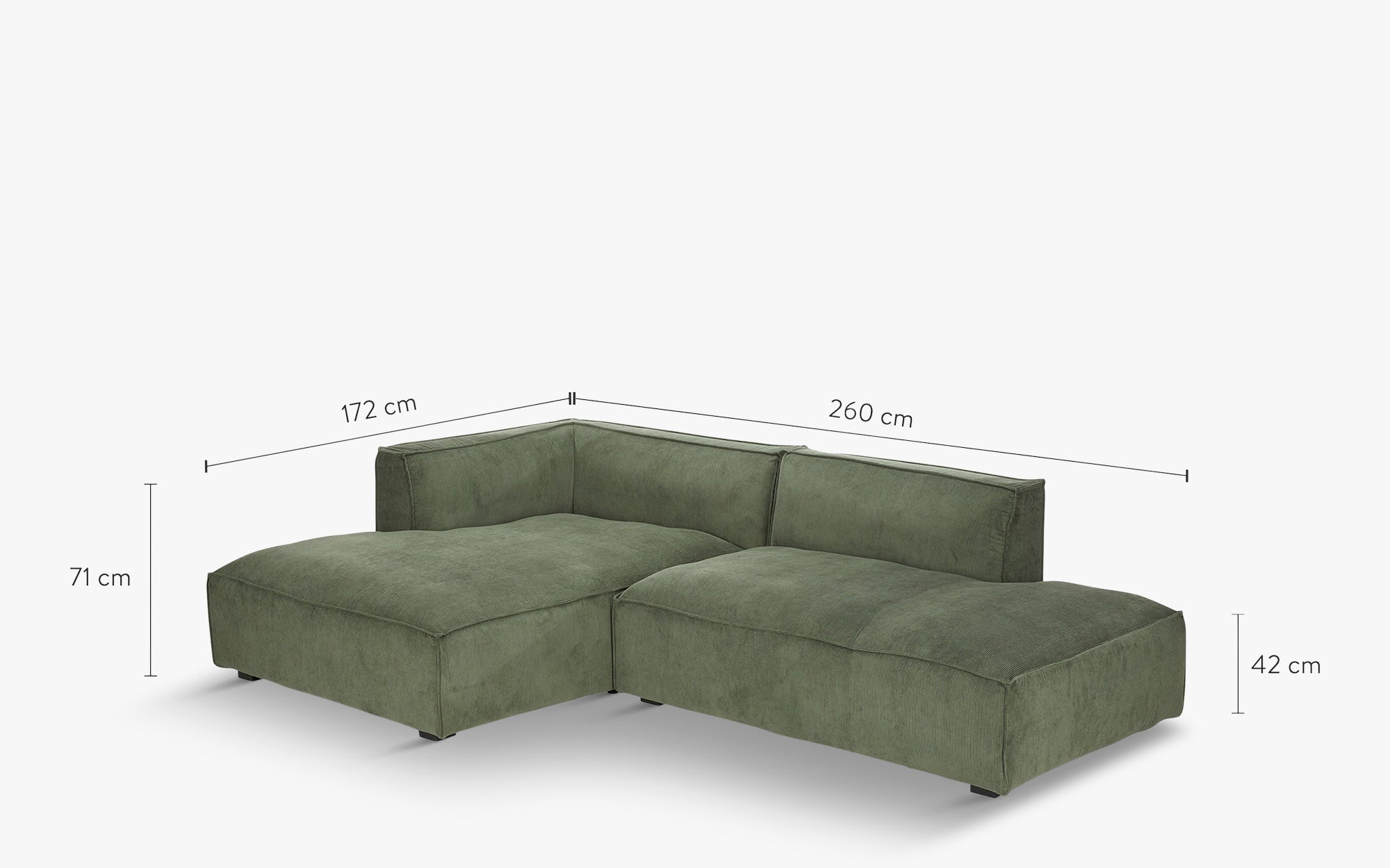 Right angle sofa, Eucalyptus green velvet & black wood, L260
