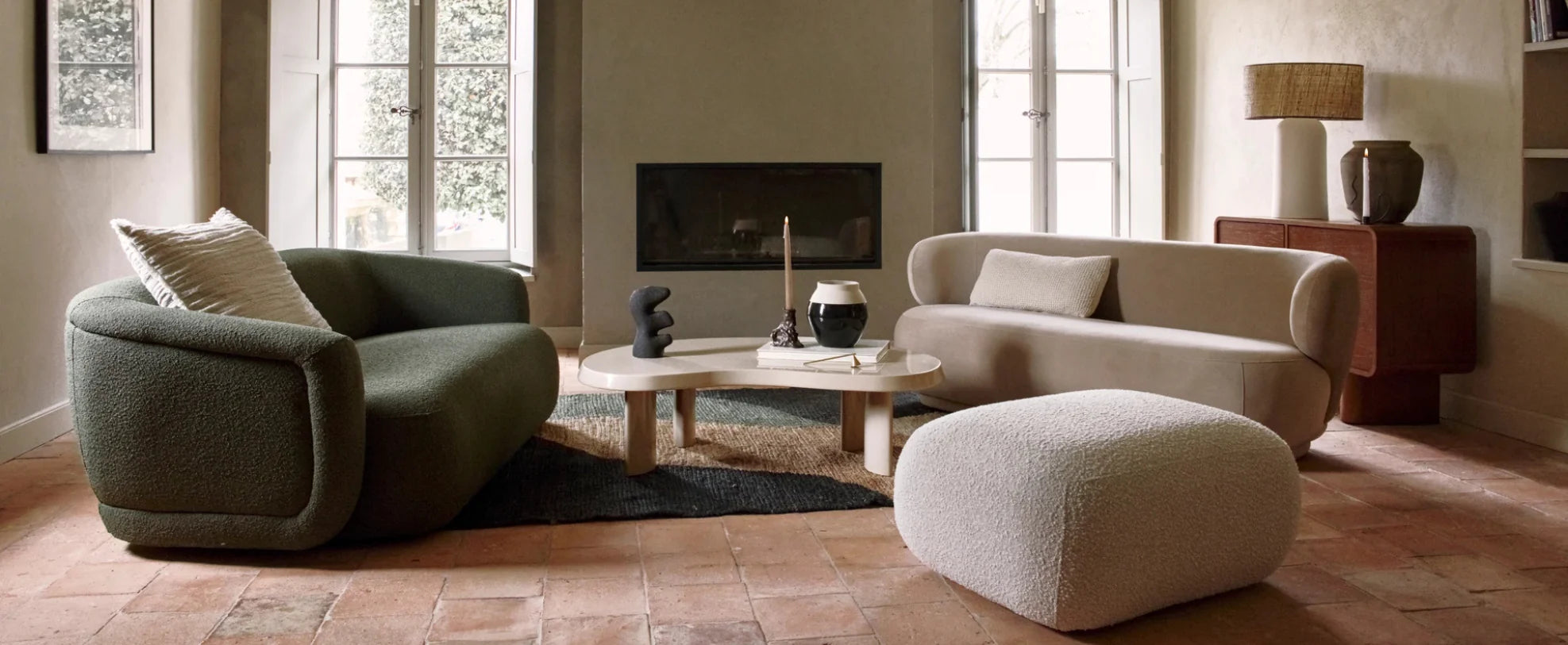 In a small living room, every detail counts, and materials play a crucial role in the overall ambience. The bouclé fabric found on GIULIA, NEO and TODD brings that tactile dimension that makes a space feel warmer and more welcoming. Textures create visual depth without taking up physical space. A tweed sofa like the VOLTA orOSLO adds interest to your decor with its naturally textured look. This visual richness compensates for limited space by creating a more sophisticated environment. Think about mixing materials: a curly sofa with a raw wood coffee table, linen cushions and a knitted plaid create a rich, balanced composition. This diversity of textures adds personality to your interior without cluttering it up. Natural materials are particularly interesting in small spaces, as they bring a sense of connection with the outdoors. They make the space less confined and more breathable.