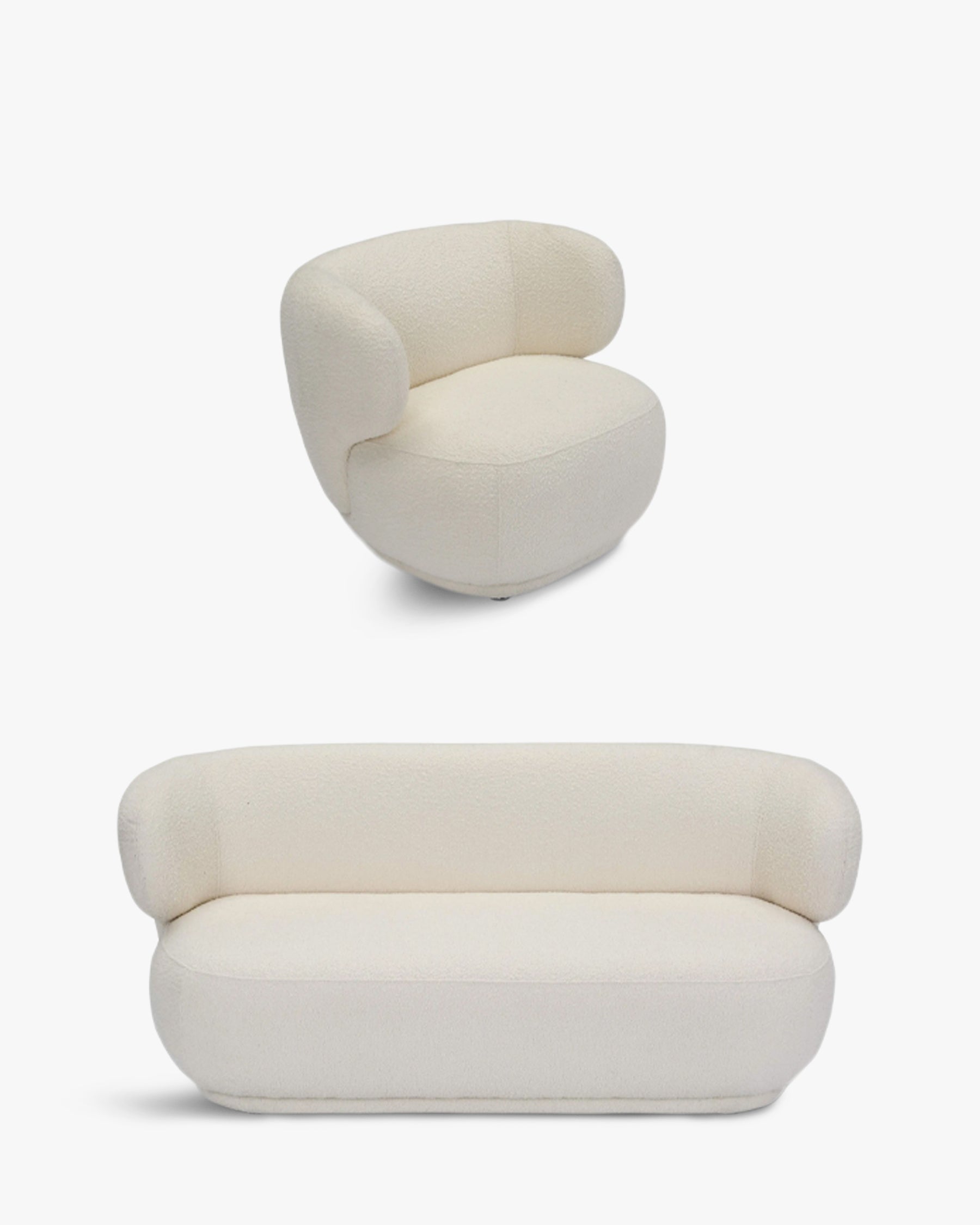 Set divano 2 posti e poltrona, Ecrù bouclé
