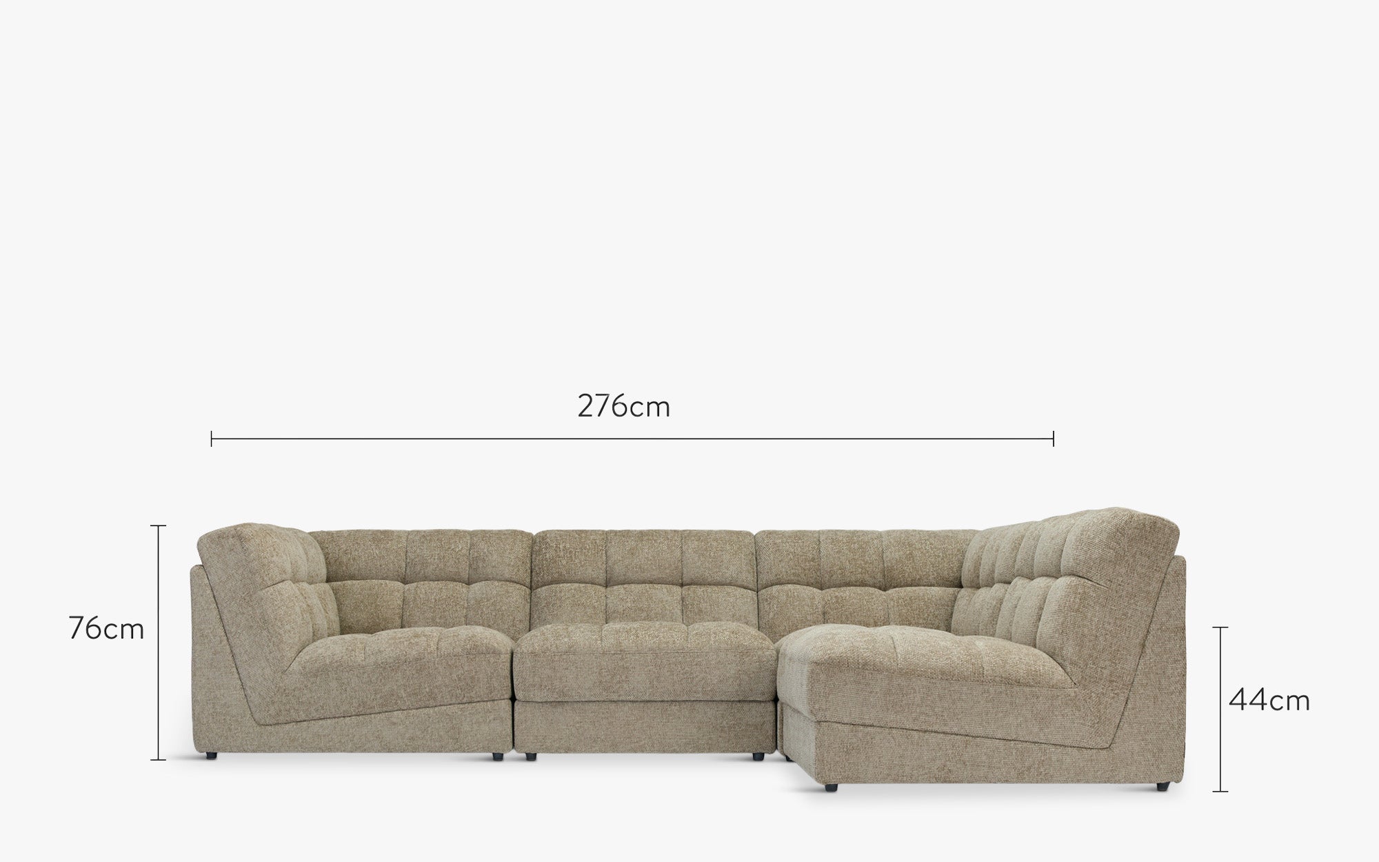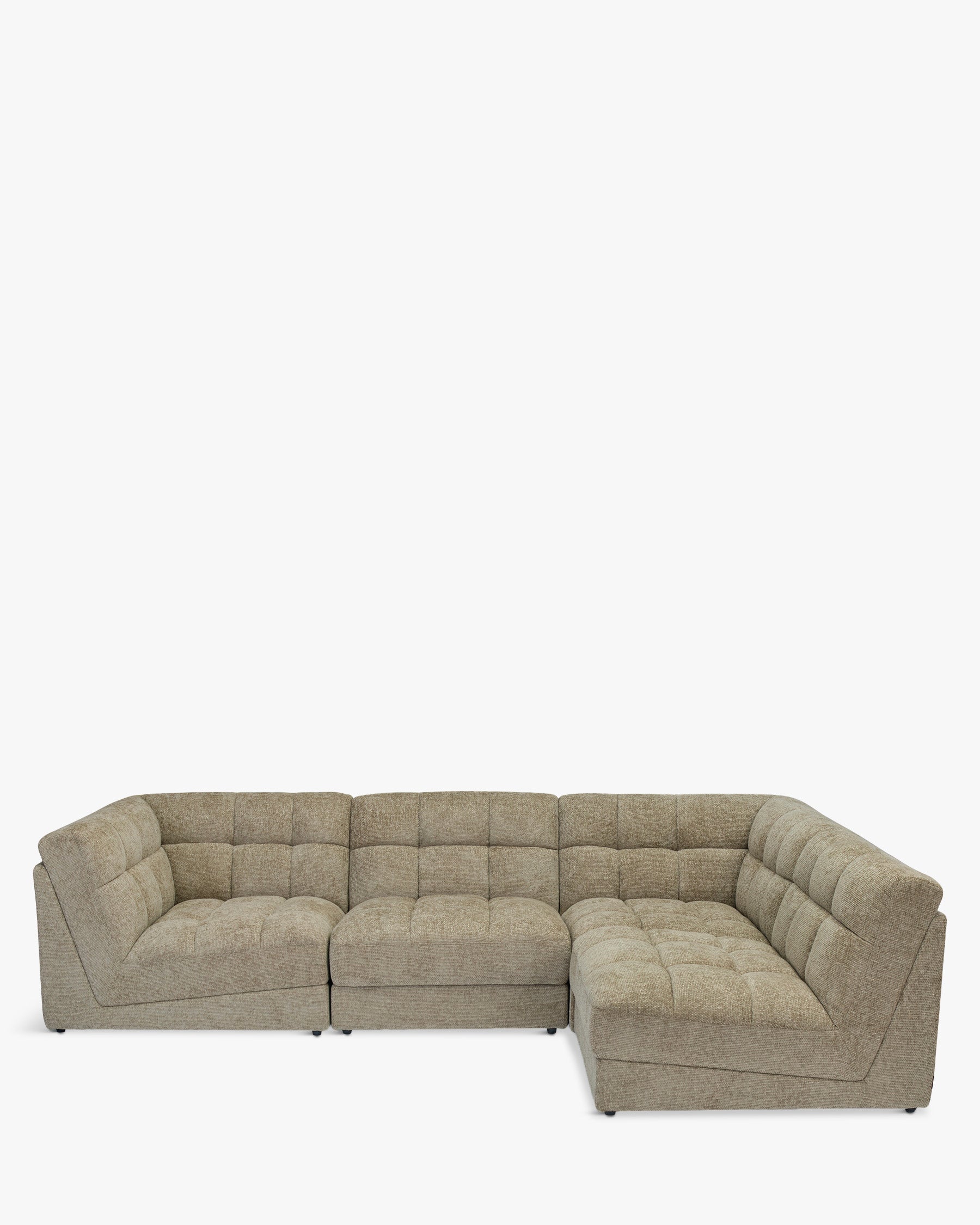 PAUL, divano modulare basso in velluto antimacchia. Accogliente, ingegnoso ed evolutivo, crea un salotto caldo e su misura per te.