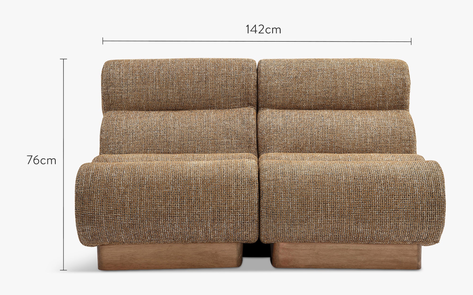 Divano 2 posti modulare, Tweed marrone caramello e legno chiaro