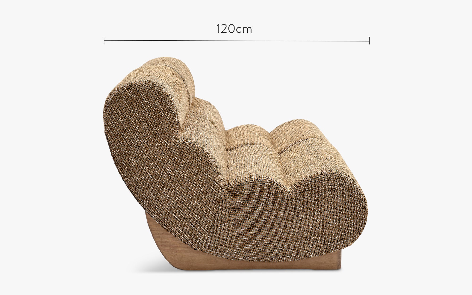 COZY, modulare a piacere: poltrona o divano a seconda dei tuoi desideri. Tweed marrone caramello, comfort assoluto e flessibilità di design per ogni tipo di interno.