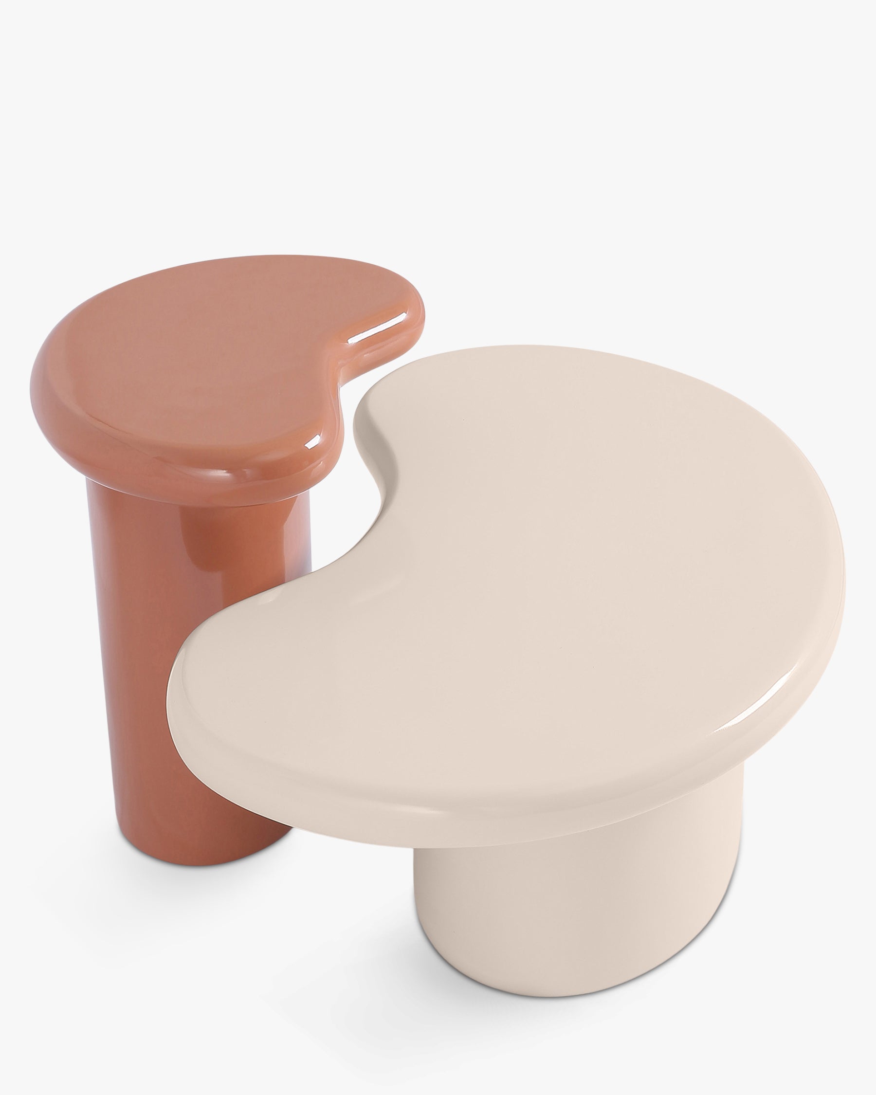 Duo MANAROLA e MONTEROSSO: tavoli in fibra di vetro dalle forme organiche. Versatili, si inseriscono ovunque con eleganza.