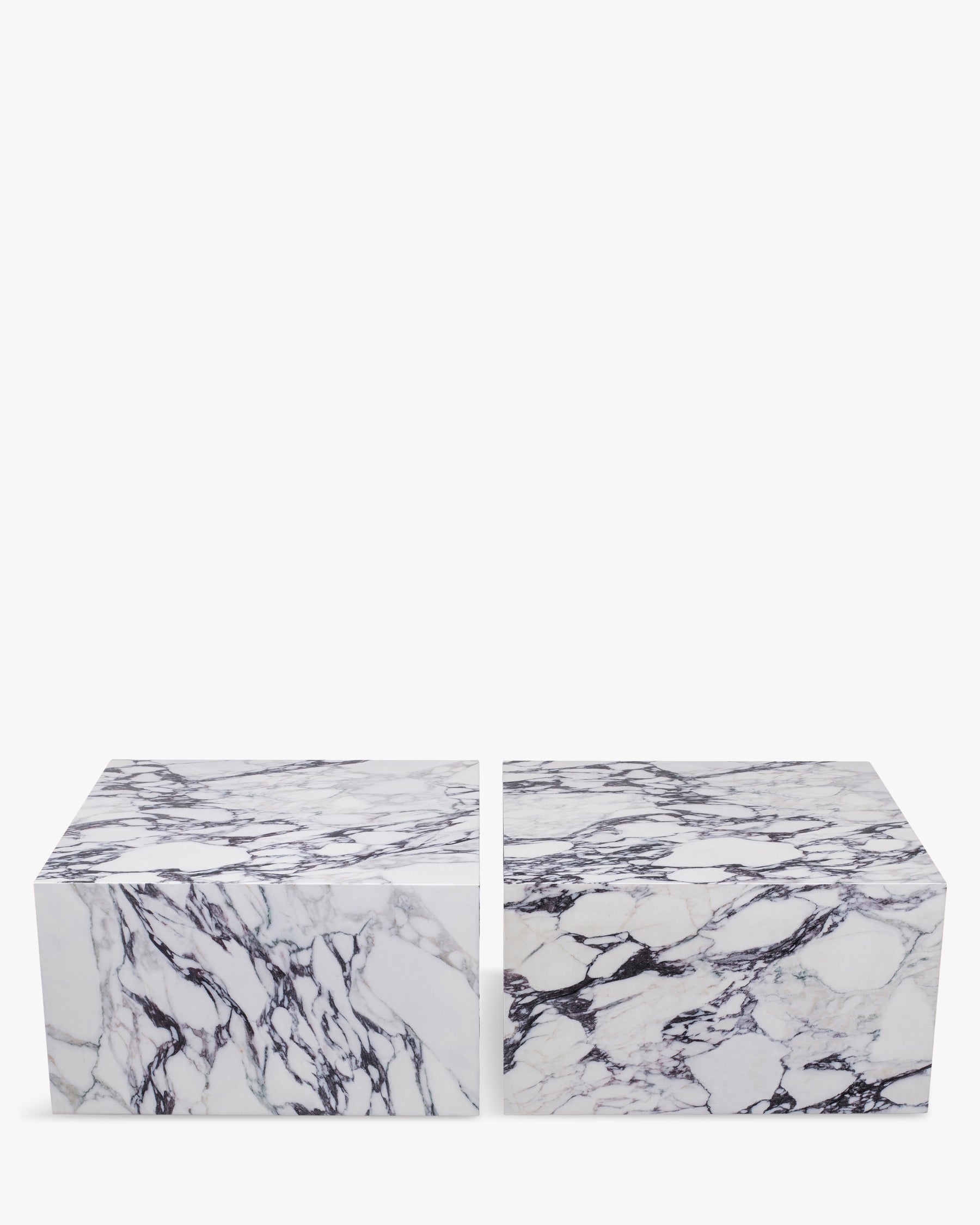 Set di 2 tavolini, Cubi effetto marmo lucido