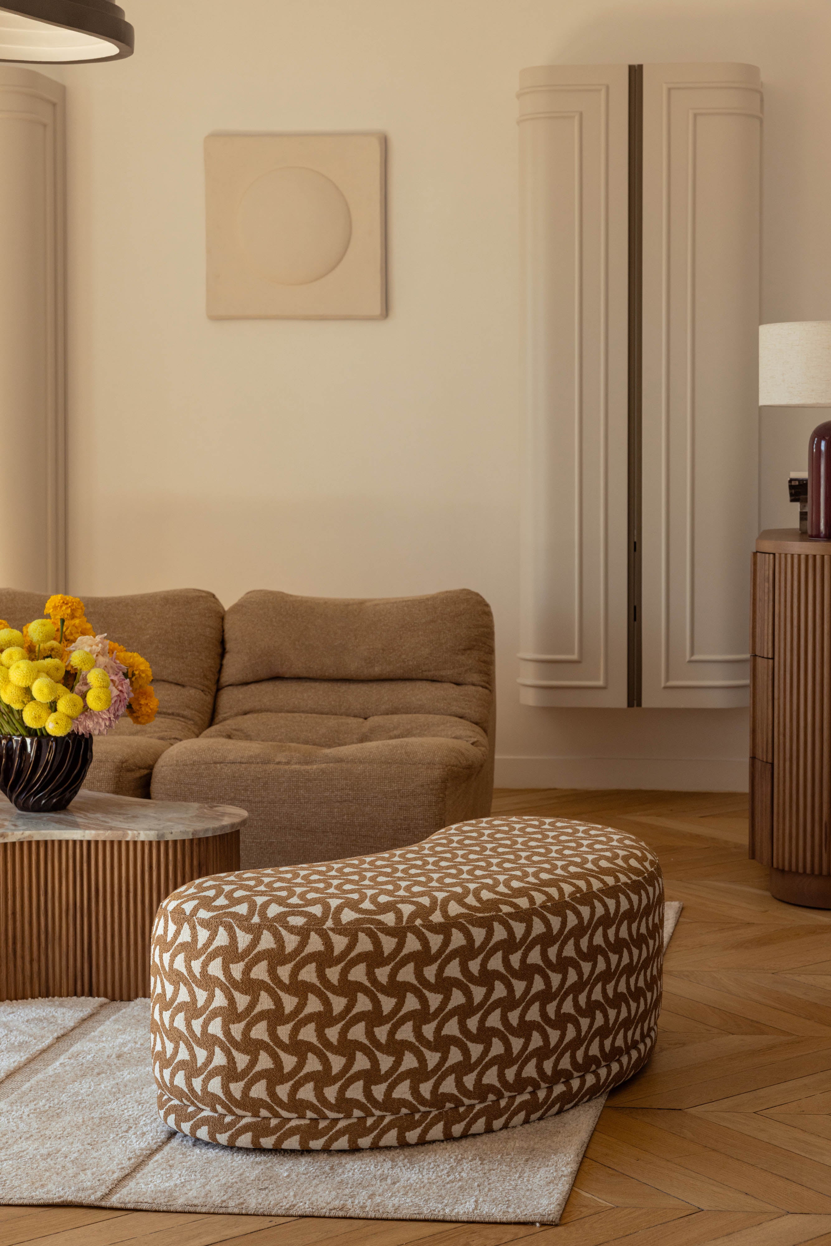 Our designers have reinterpreted the 70's design to bring you a real cosy comfort. With its rounded and organic shape, the design of the ENZO cosy bench is close to the ground and seduces with its generous proportions - seat depth: 100x60 cm. Its seat is made of high density foam - guaranteed without feather stuffing (!) - to offer a soft and relaxing comfort. It is covered with a super cosy and textured fabric - density 630g/m2.