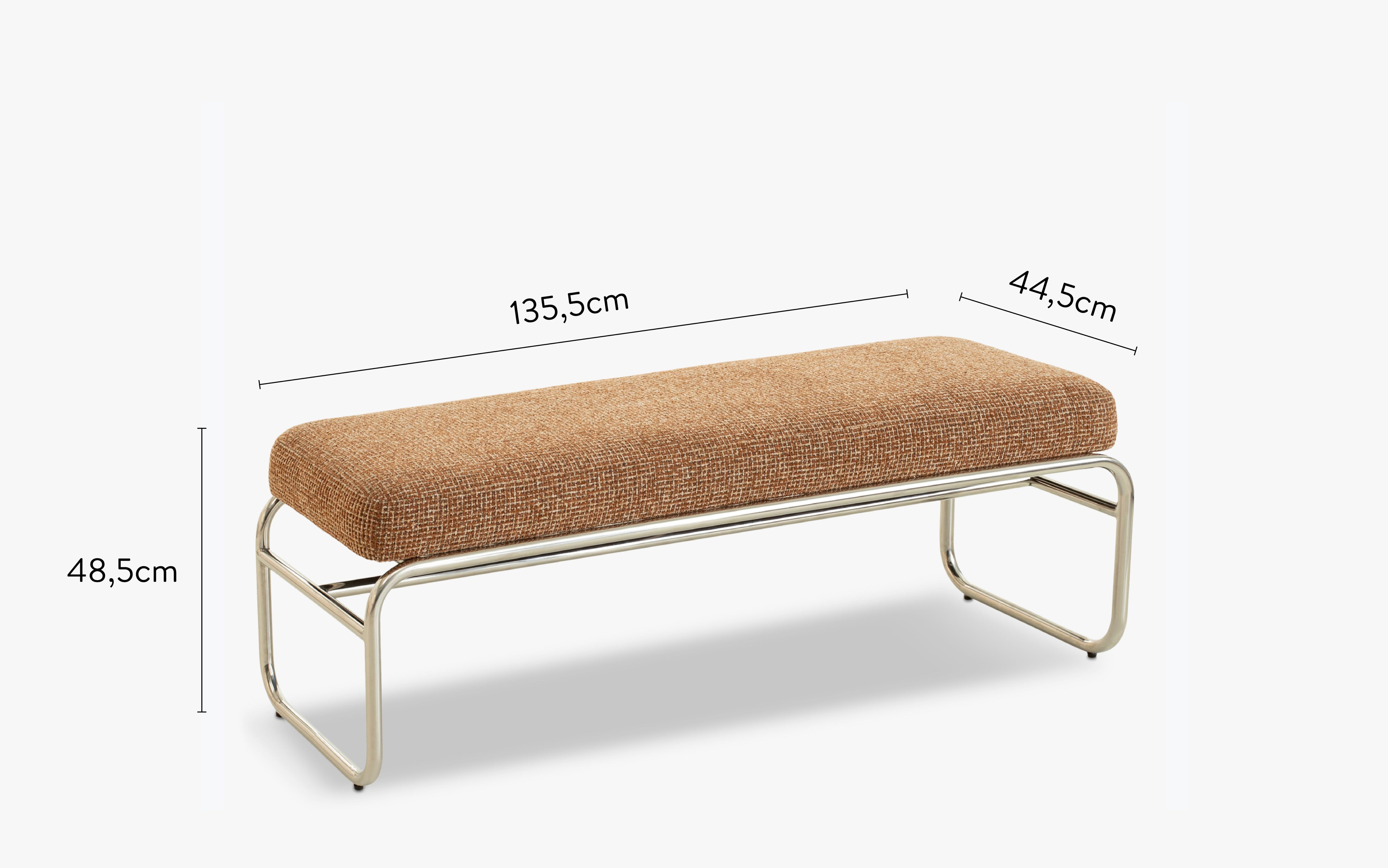 Behind its airy silhouette, KYRA reveals a solid and enduring design. Its stainless steel frame ensures both visual lightness and lasting stability, making this bench as practical as it is elegant. The carefully padded seat combines comfort and durability while showcasing the chosen material — velvet or tweed. Thanks to its robust tubular structure, KYRA fits effortlessly into both contemporary and vintage interiors, guaranteeing longevity and ease of maintenance.