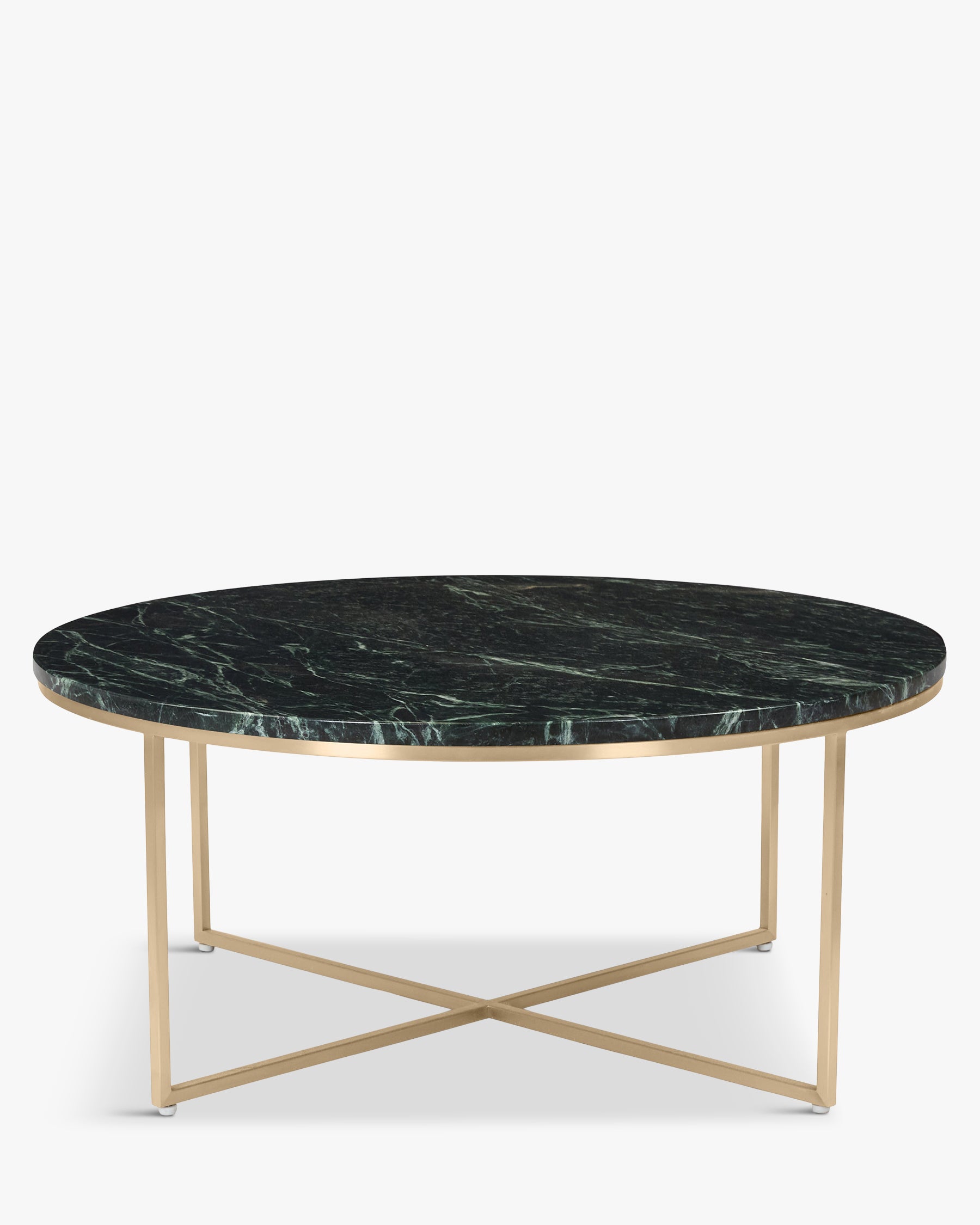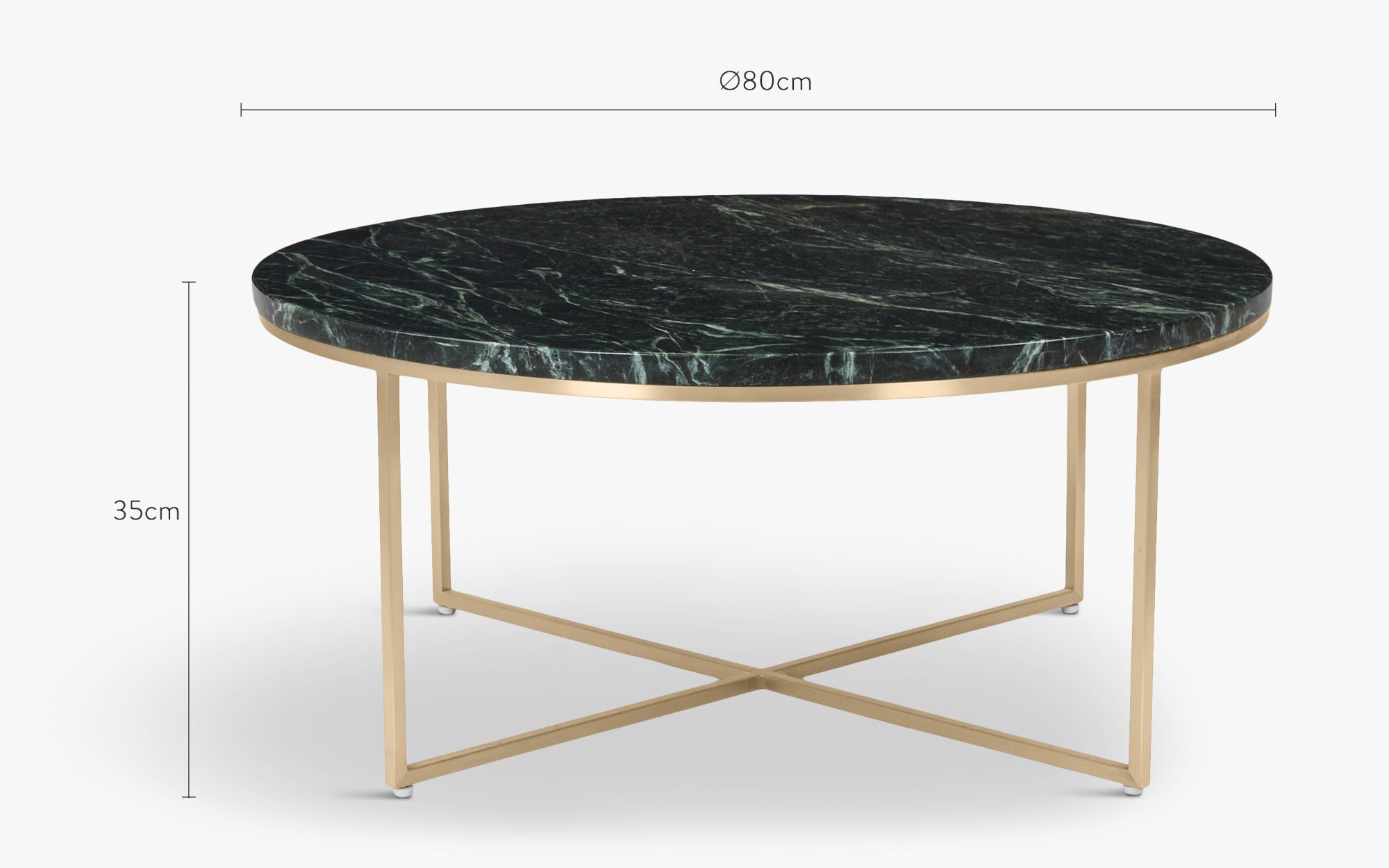 Coffee table, Waterproof green marble & golden metal, Ø80